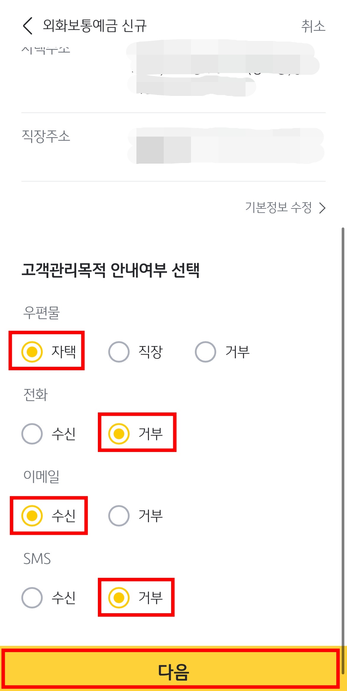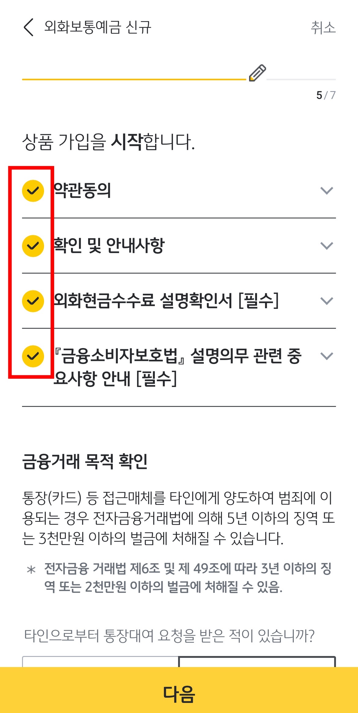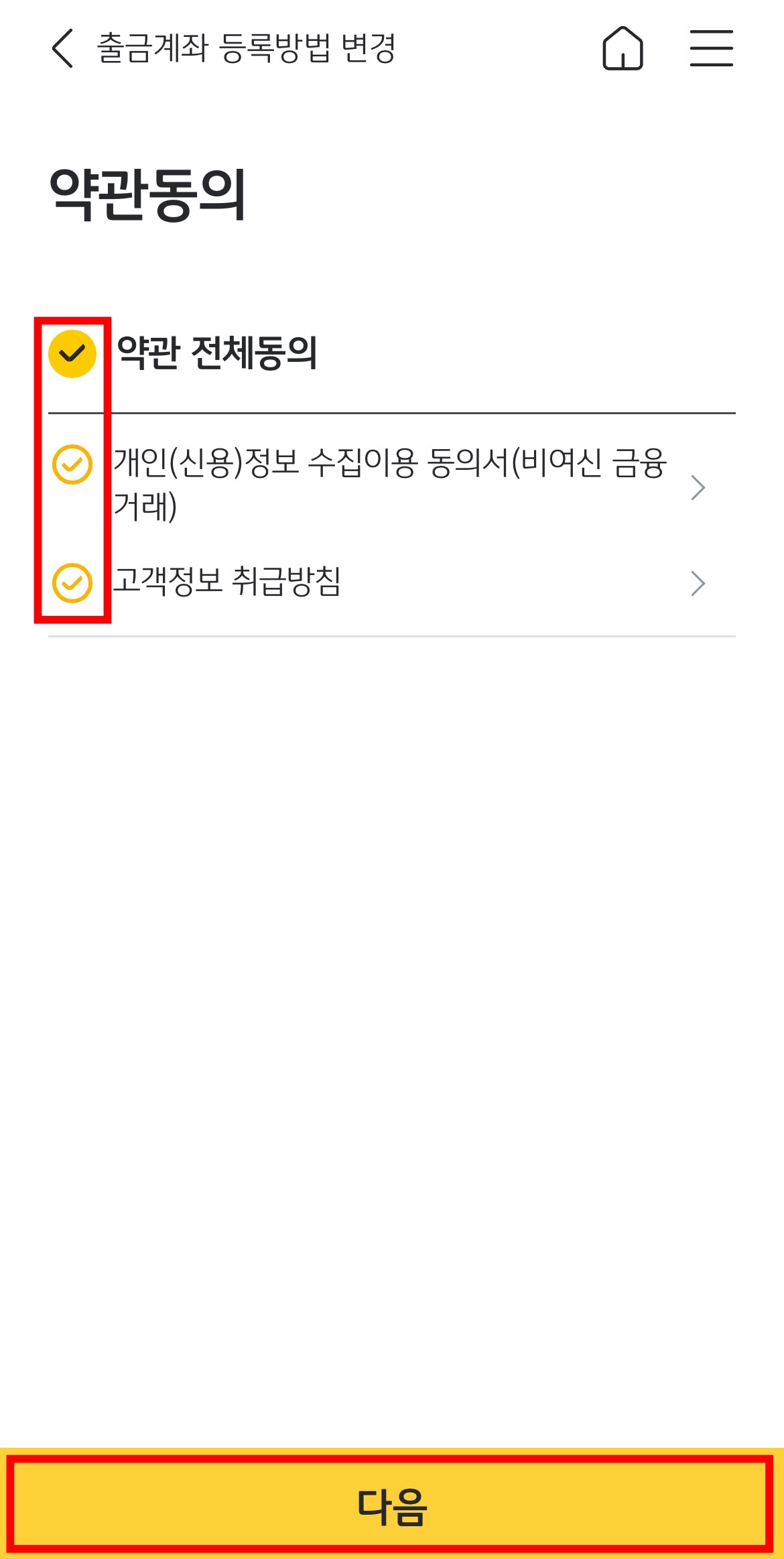 약관 전체동의를 누르고 '다음'을 눌러봅니다.