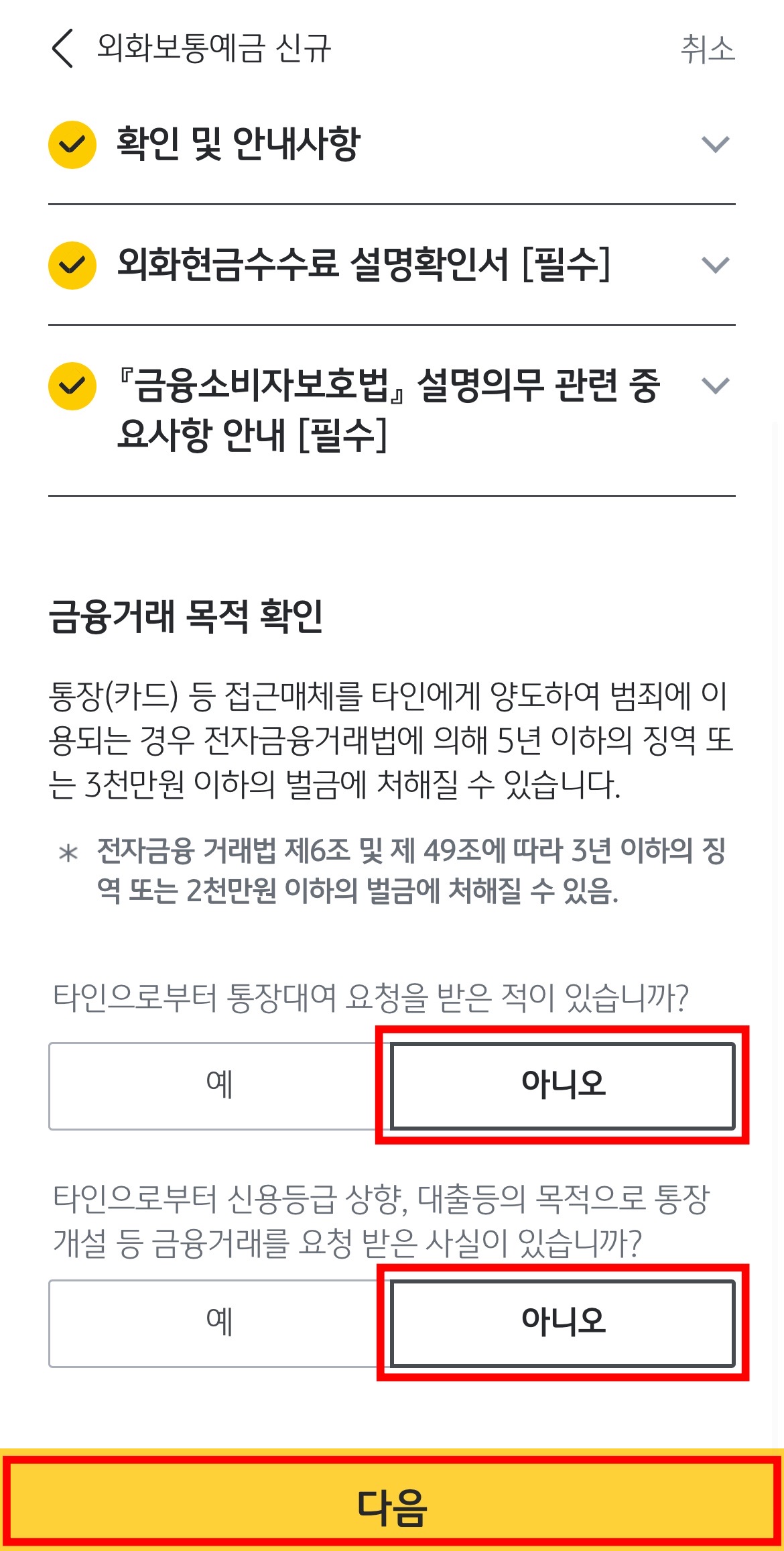 여기까지 따라오신 분들은 모두 '아니오'를 선택하셔야겠죠?