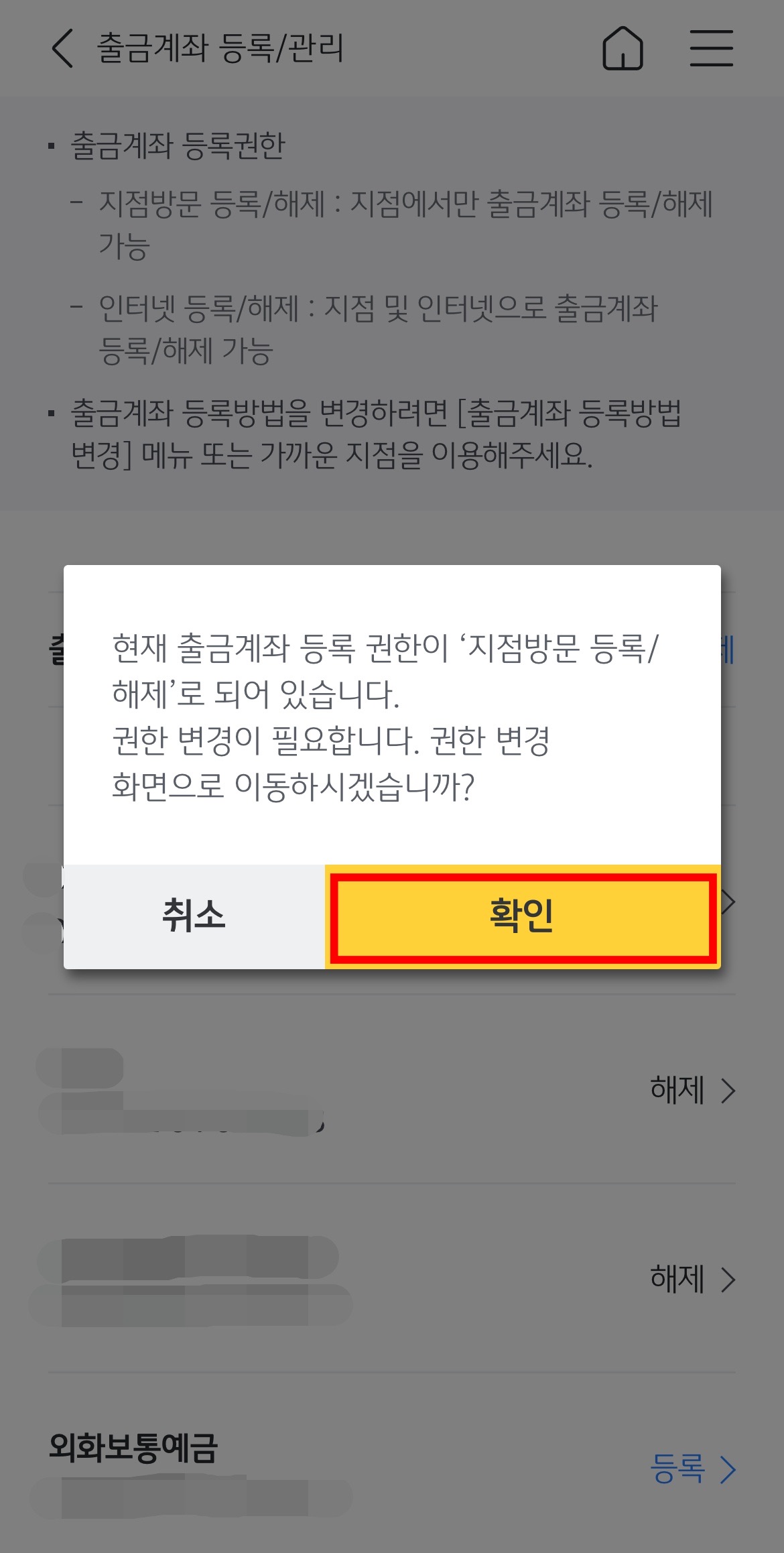 '출금계좌 등록'을 눌러봅니다.
