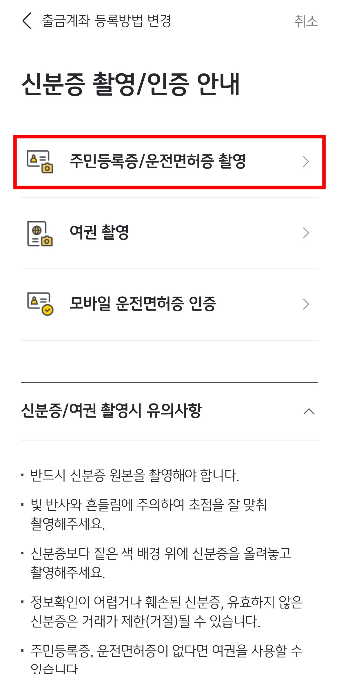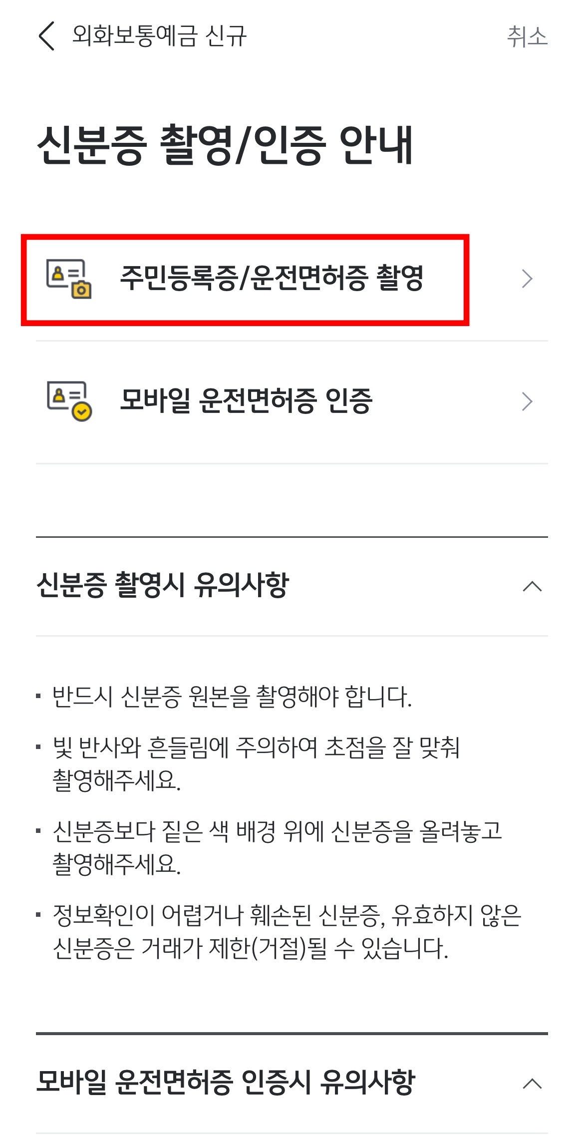 아까 준비해놨던 신분증이 다시 필요한 시점입니다.
