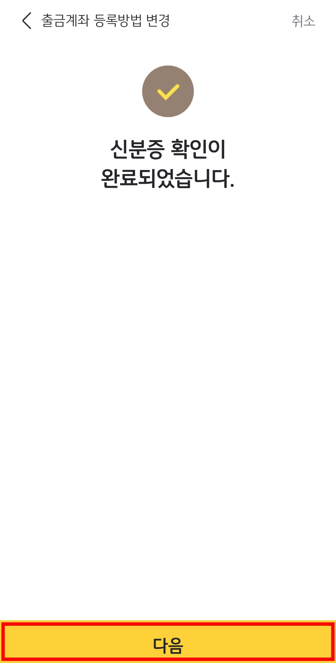 신분증 확인이 완료되었다는 화면이 나오면 '다음'을 눌러봅니다.