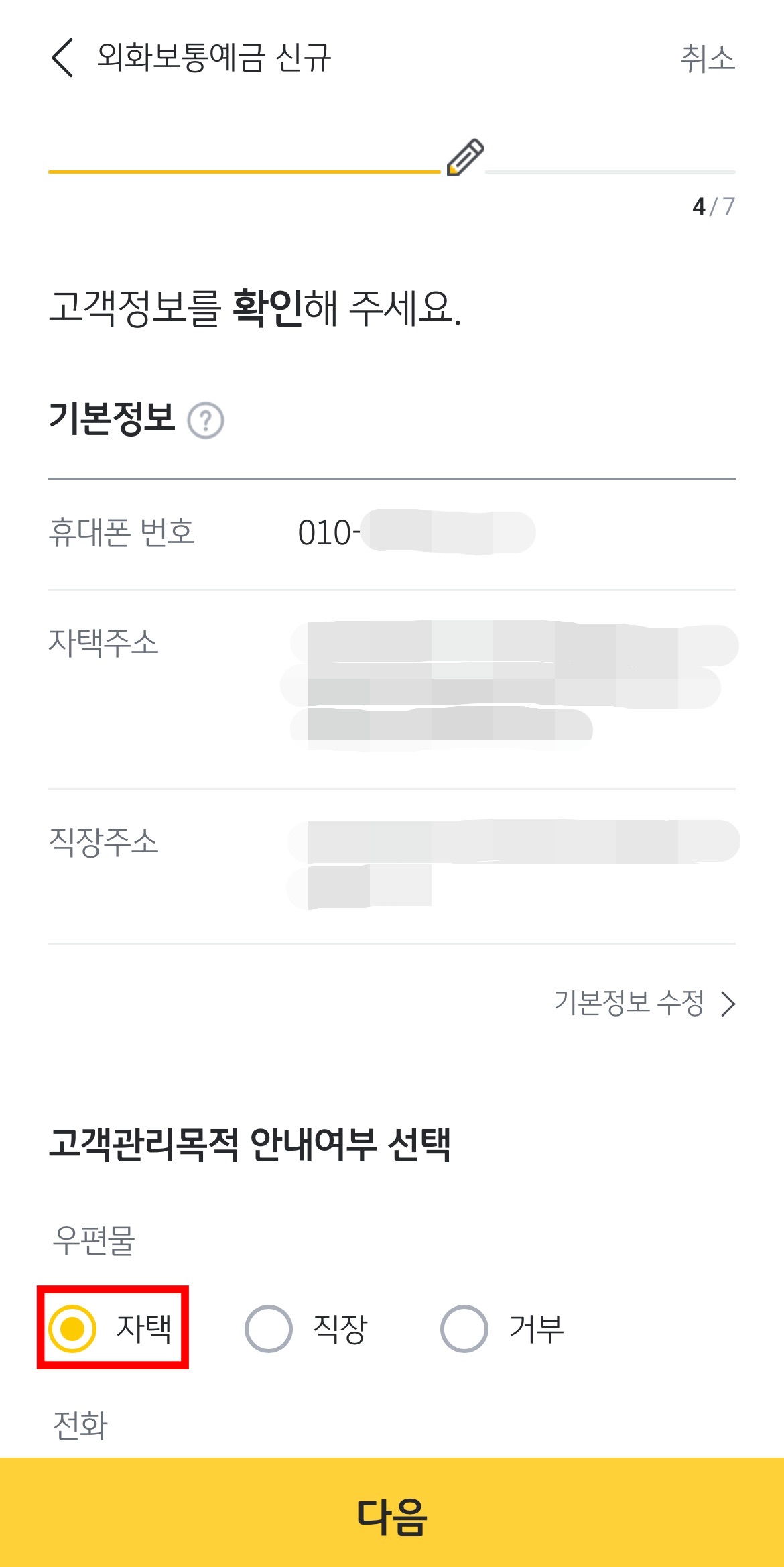 이제 고객정보를 확인하는 단계입니다.