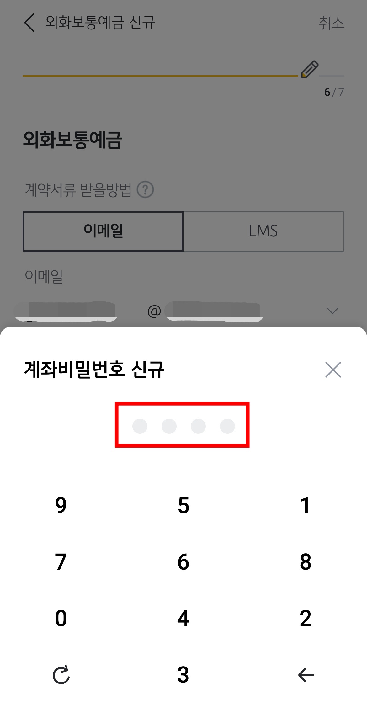 이제 새로 만들어질 'KB국민은행 예화보통예금'의 계좌비밀번호를 정해봅니다.