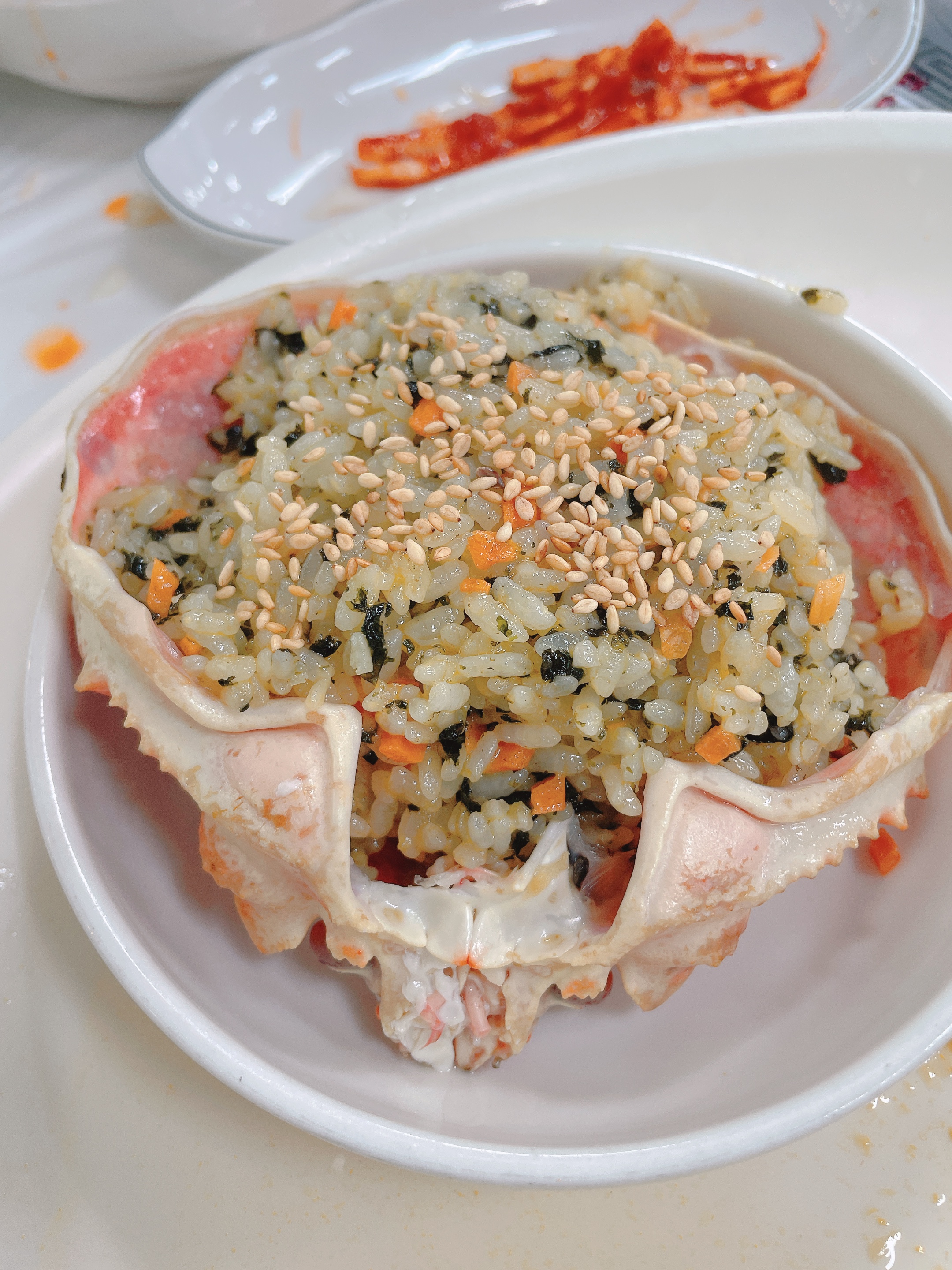 게딱지에 볶음밥을 올려먹는건 빼놓을 수 없는 중요한 순서입니다!!!