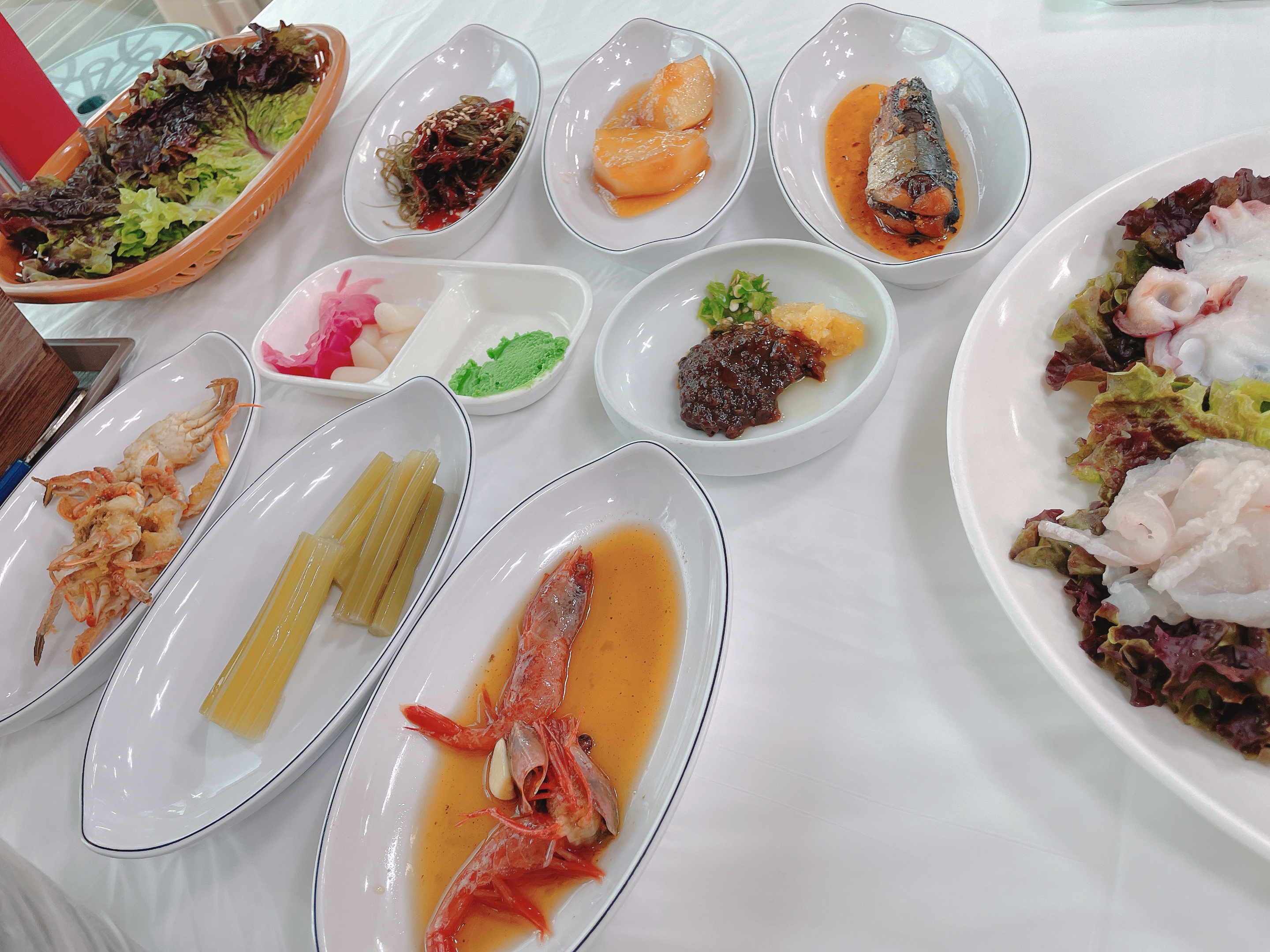 시간이 좀 지나니 밑반찬(스**시)들이 하나씩 나옵니다~