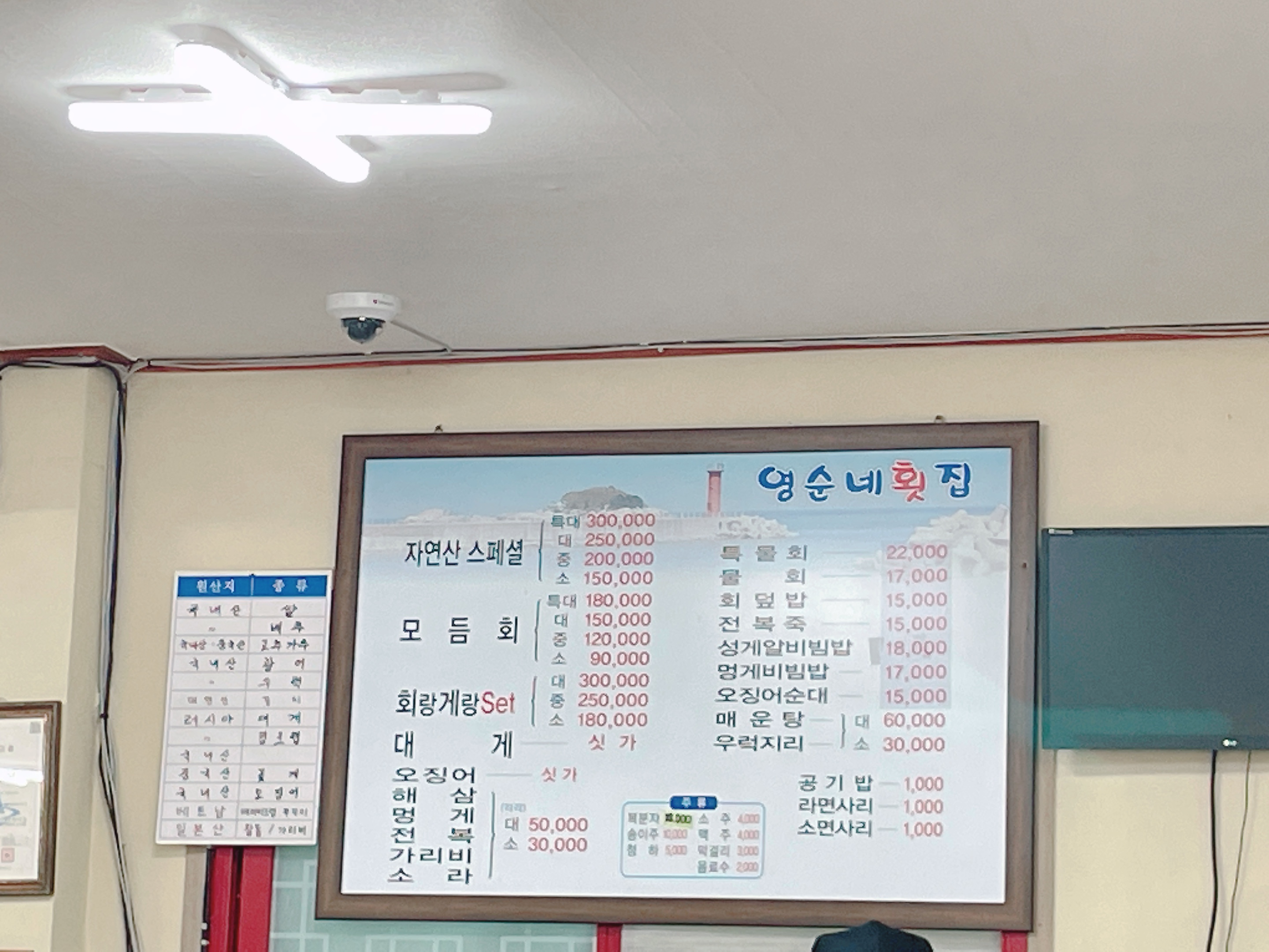 영순네횟집에 들어가 메뉴판을 보고 고민을 해봅니다.