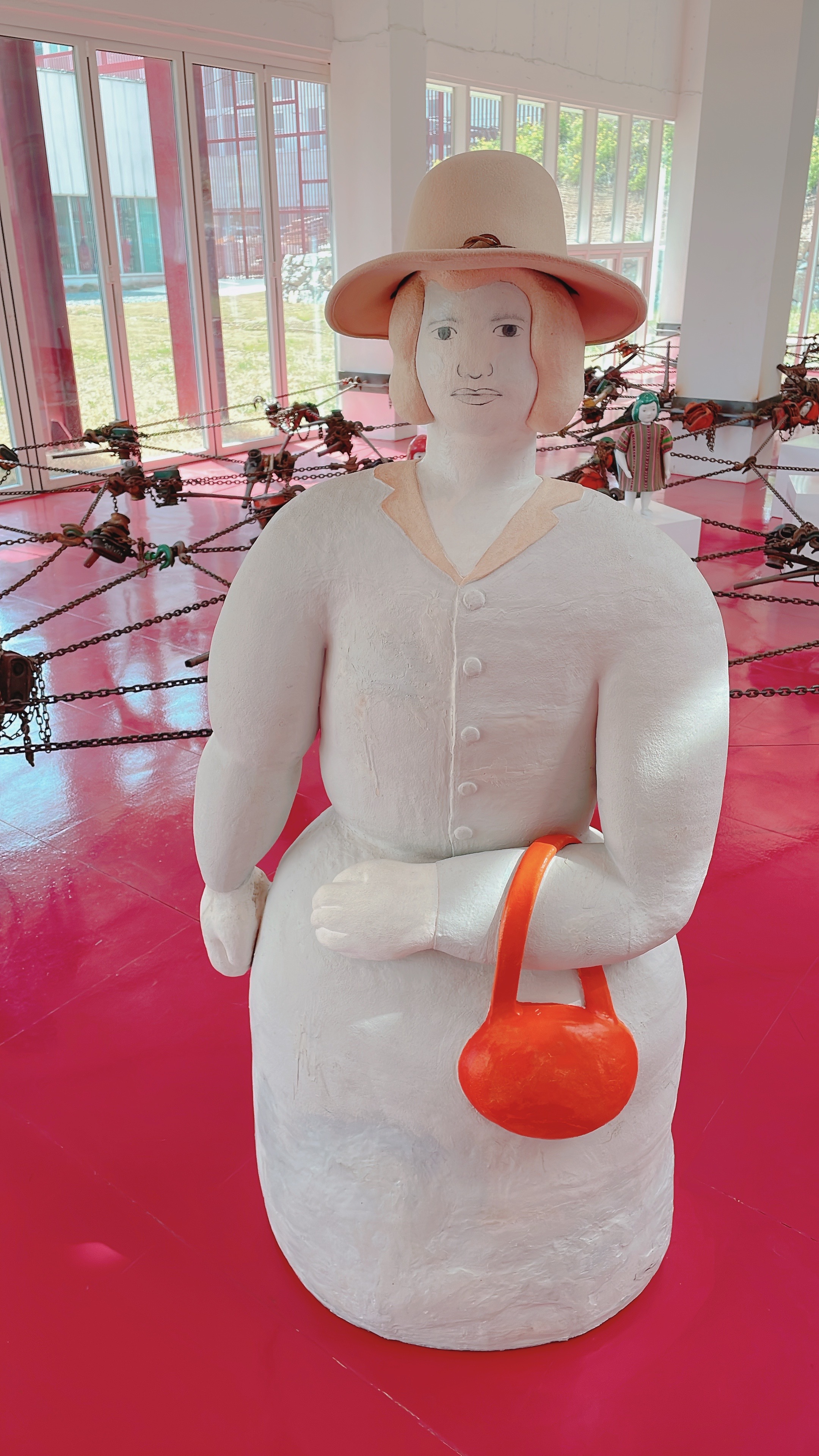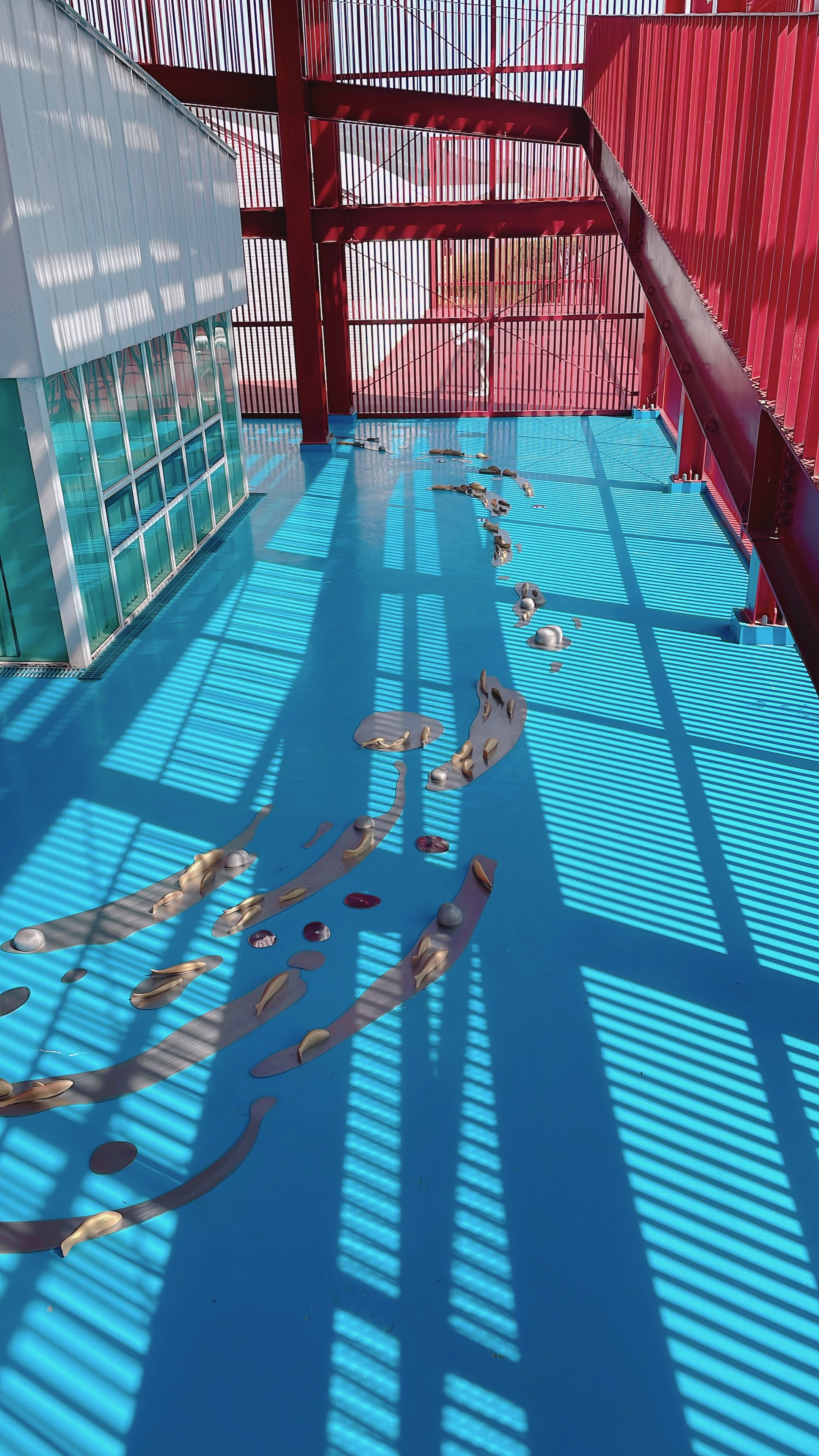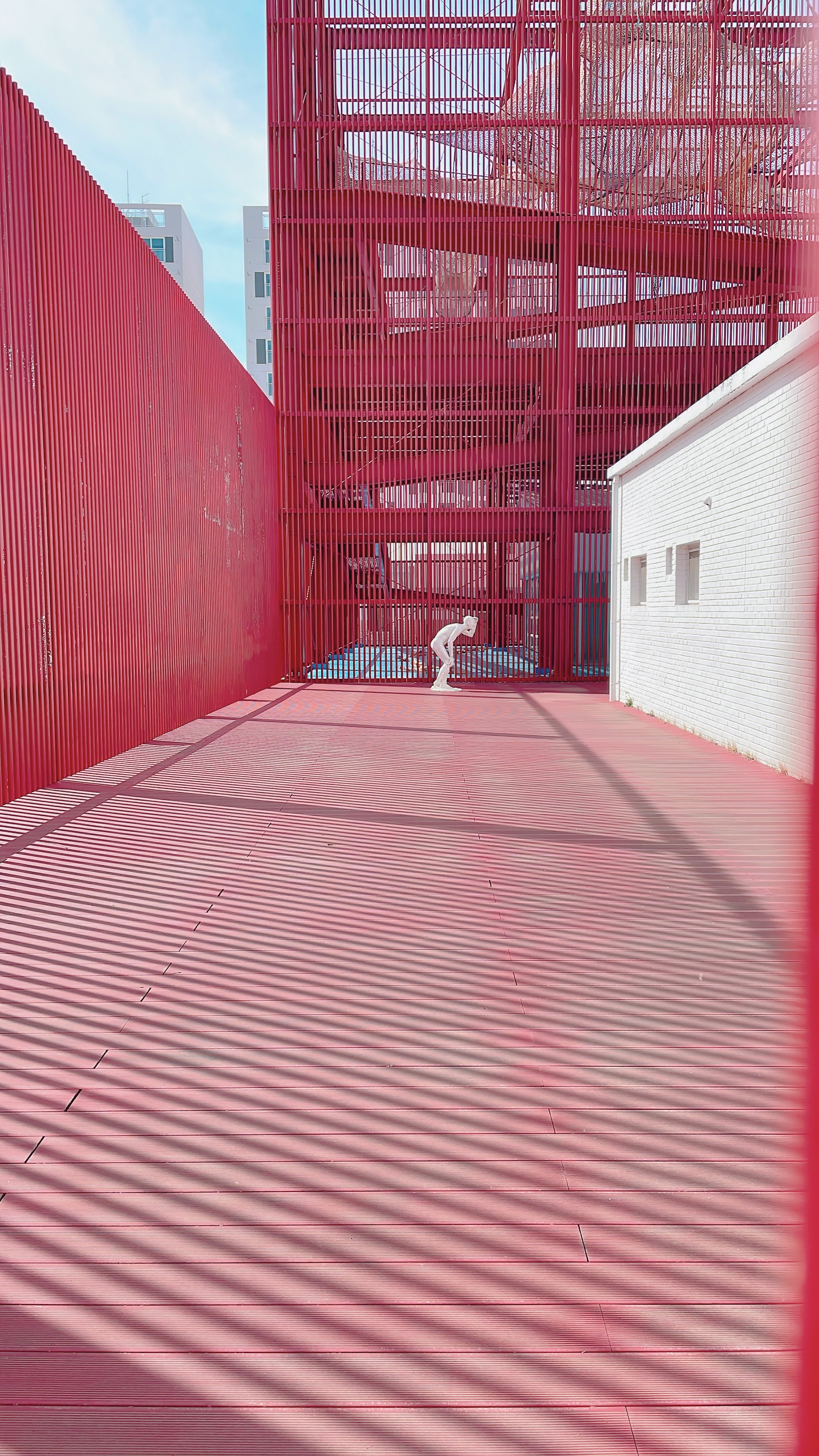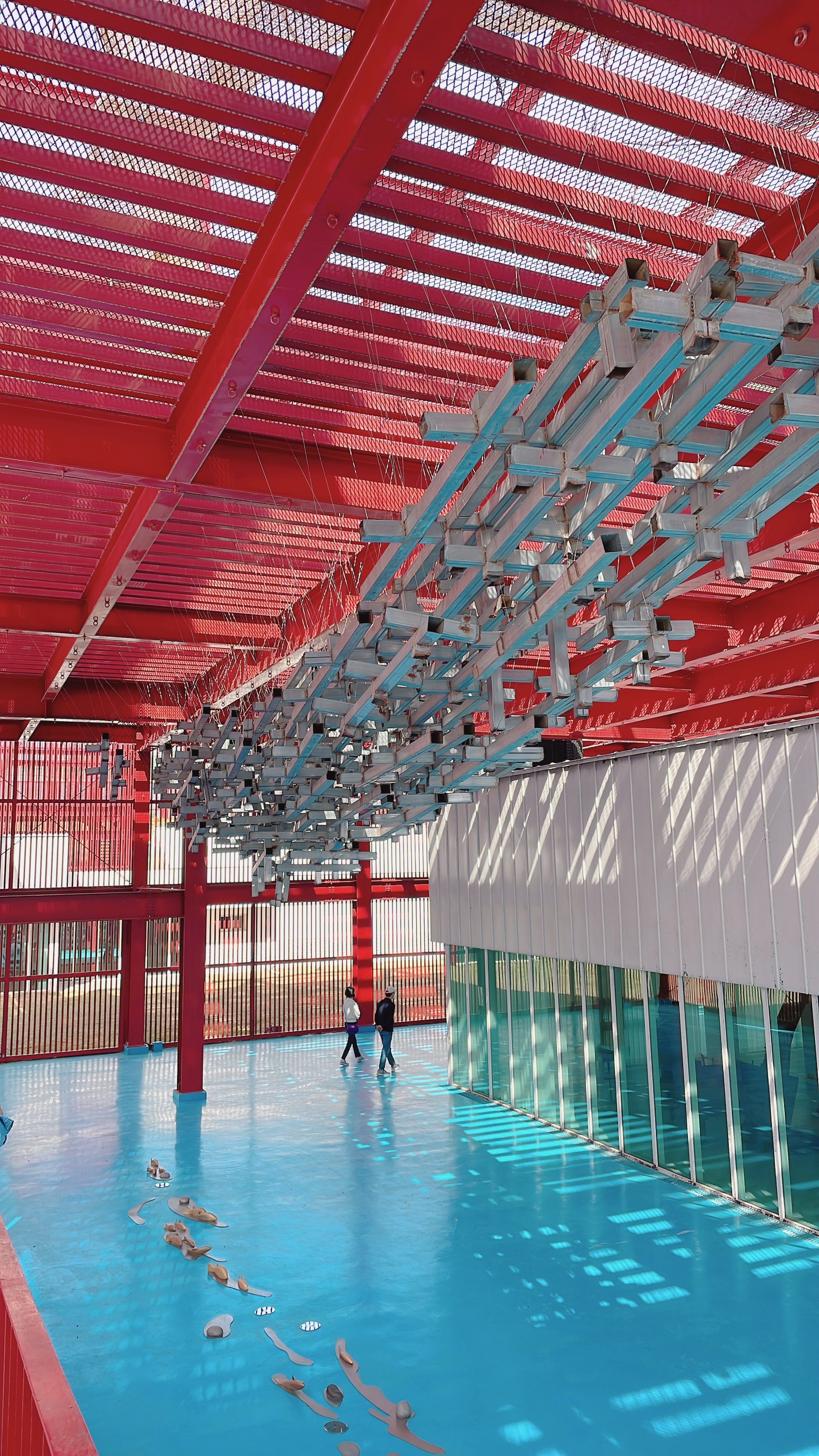 빨간색 길다란 조형물이 대나무처럼 길쭉한 나무인가 했는데 가까이 가서 보니 금속 재질입니다.