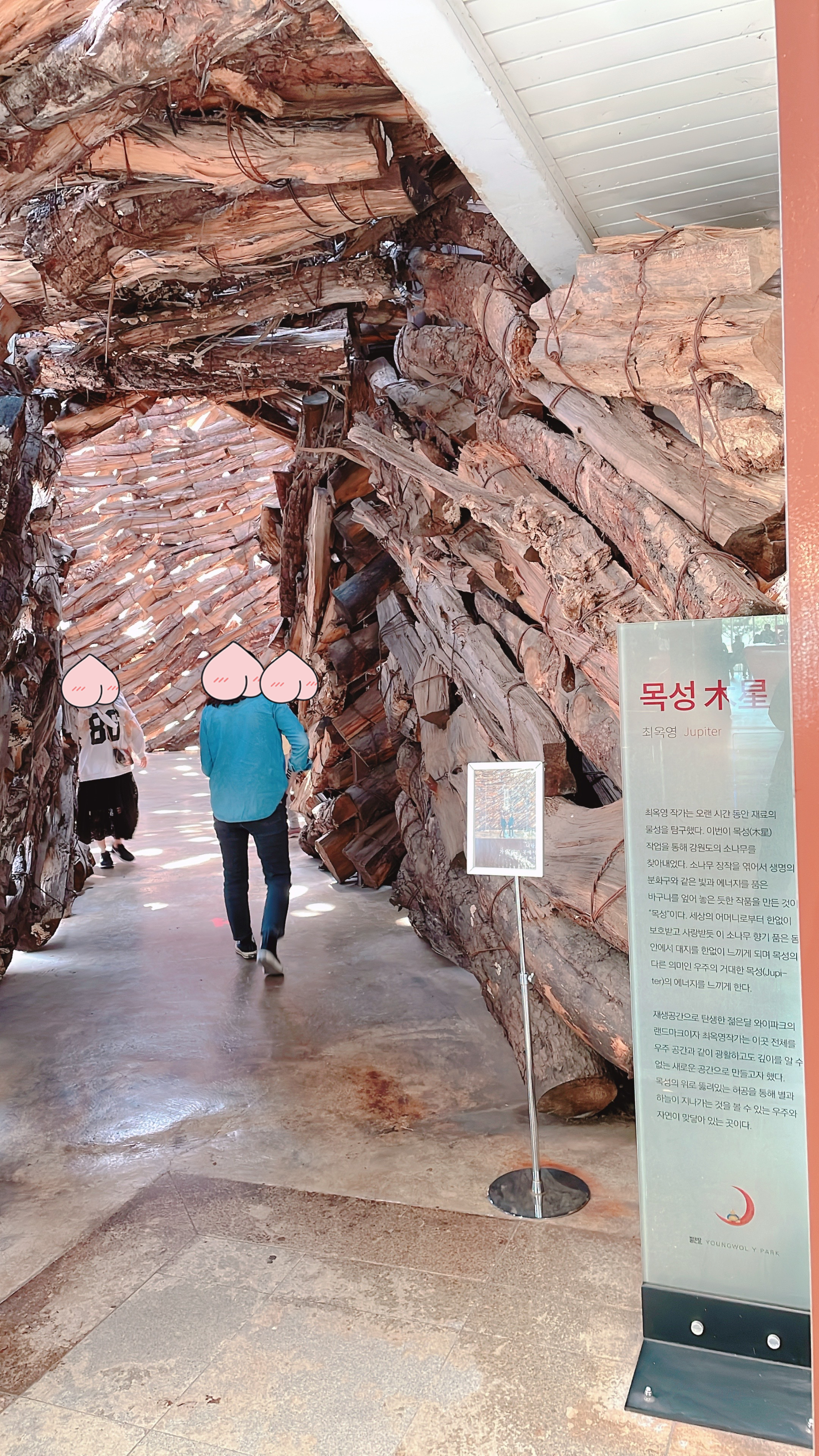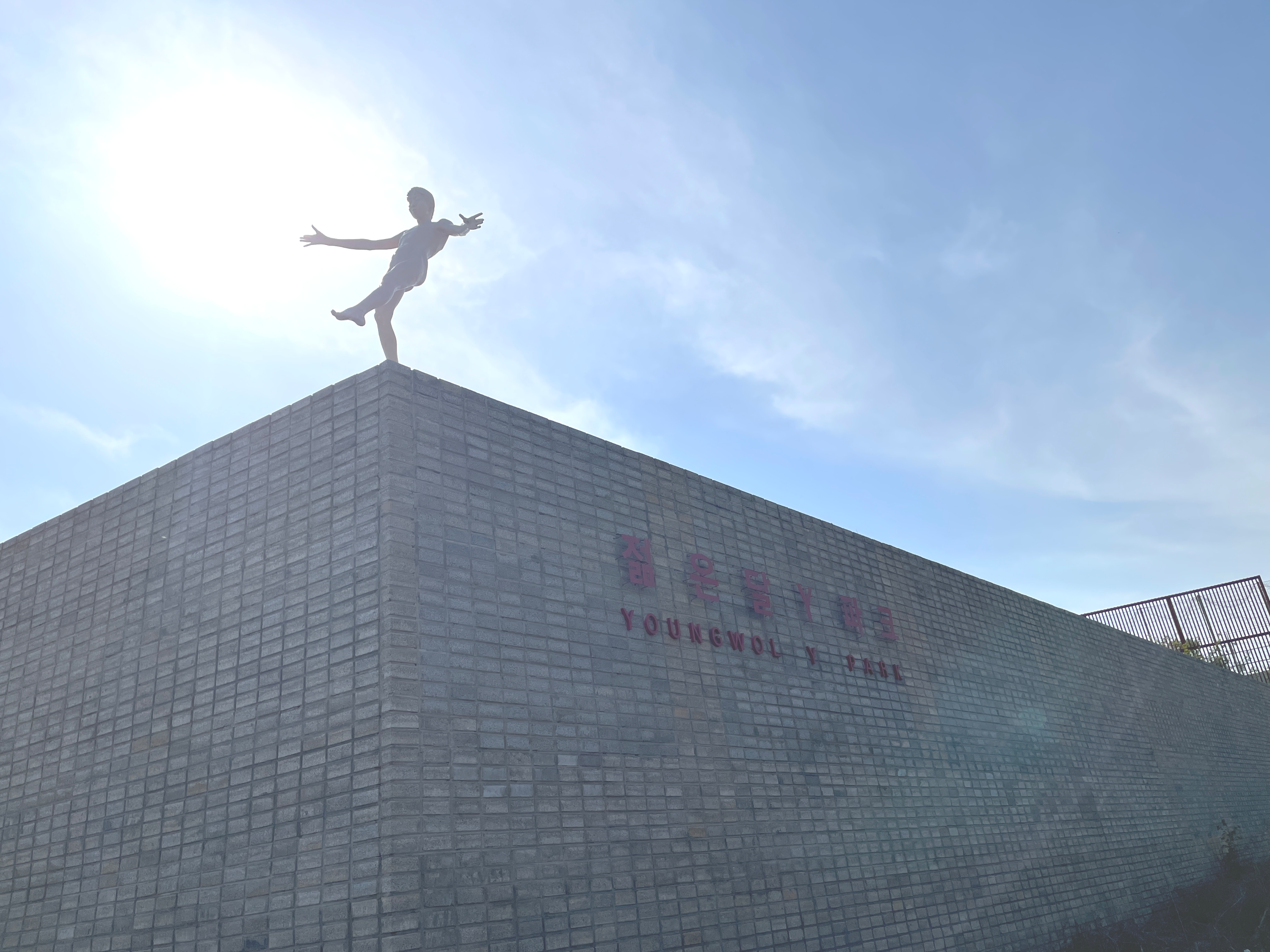 캠핑장에서 30여분을 달려 젊은달와이파크에 도착하니 넘어질 것 같은 자세를 한 조형물이 저희를 반깁니다.