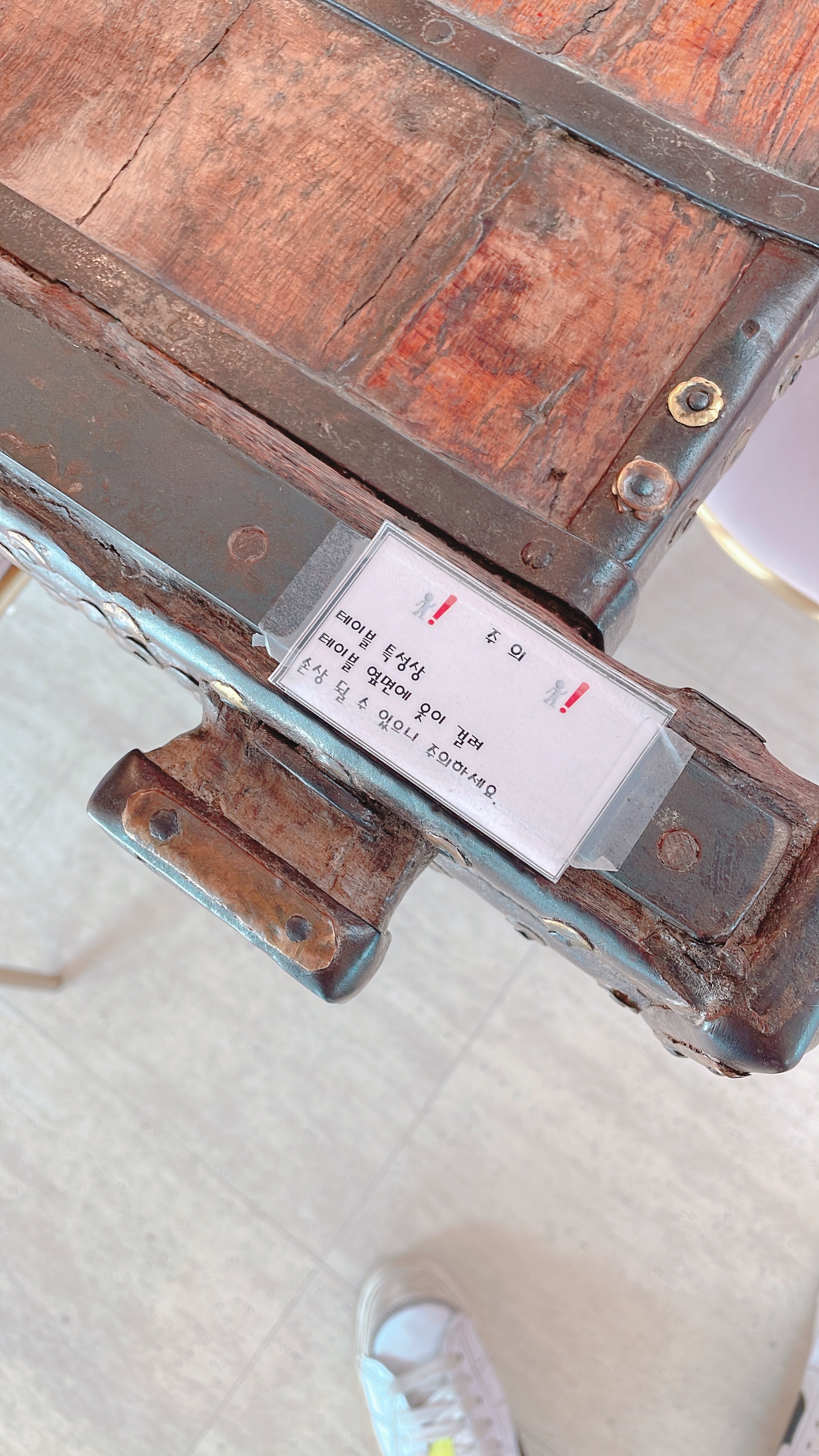 아이들이 돌아다니다보면 걸리기 좋게 생겨서인지 주의 문구가 있습니다.