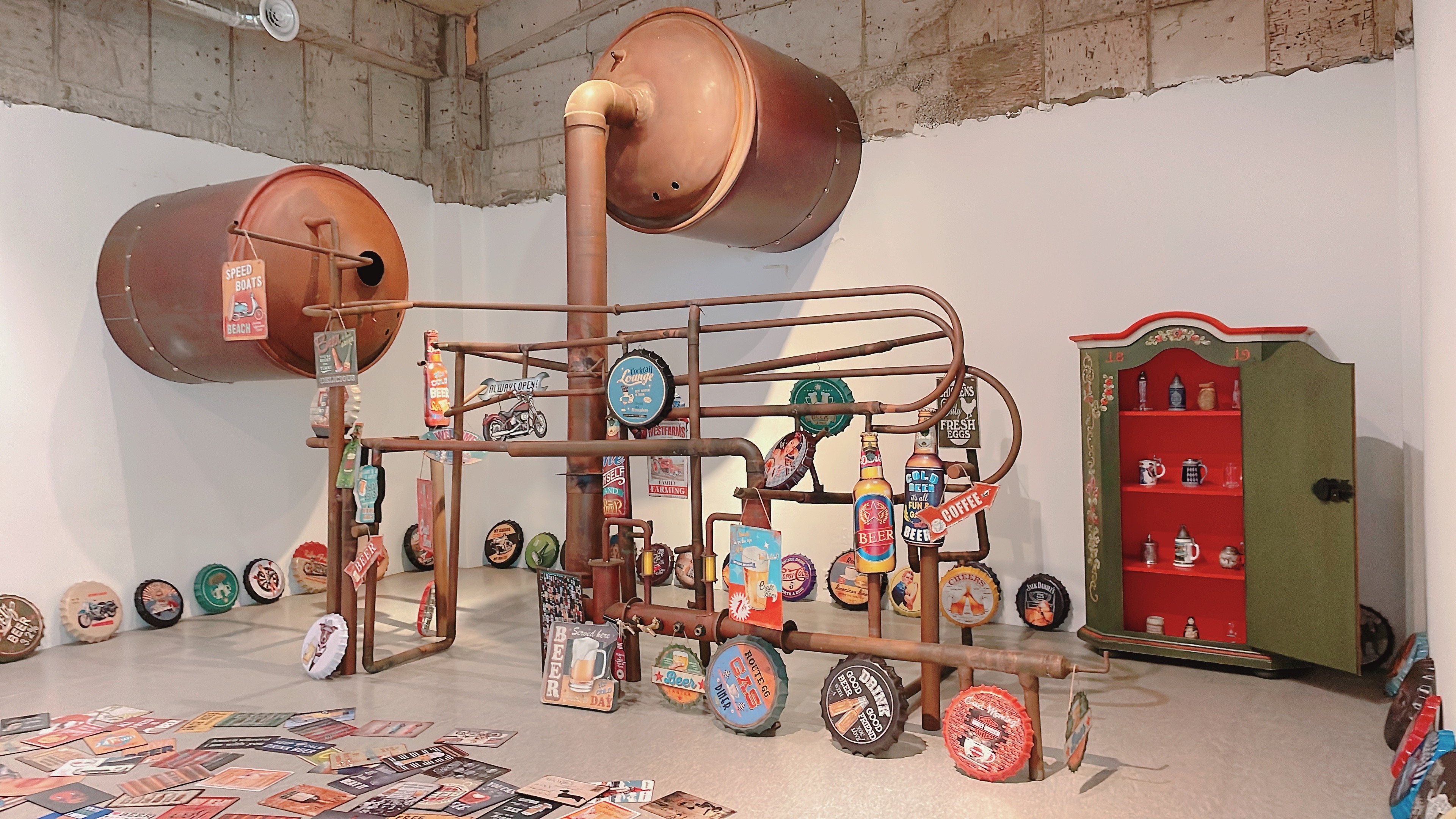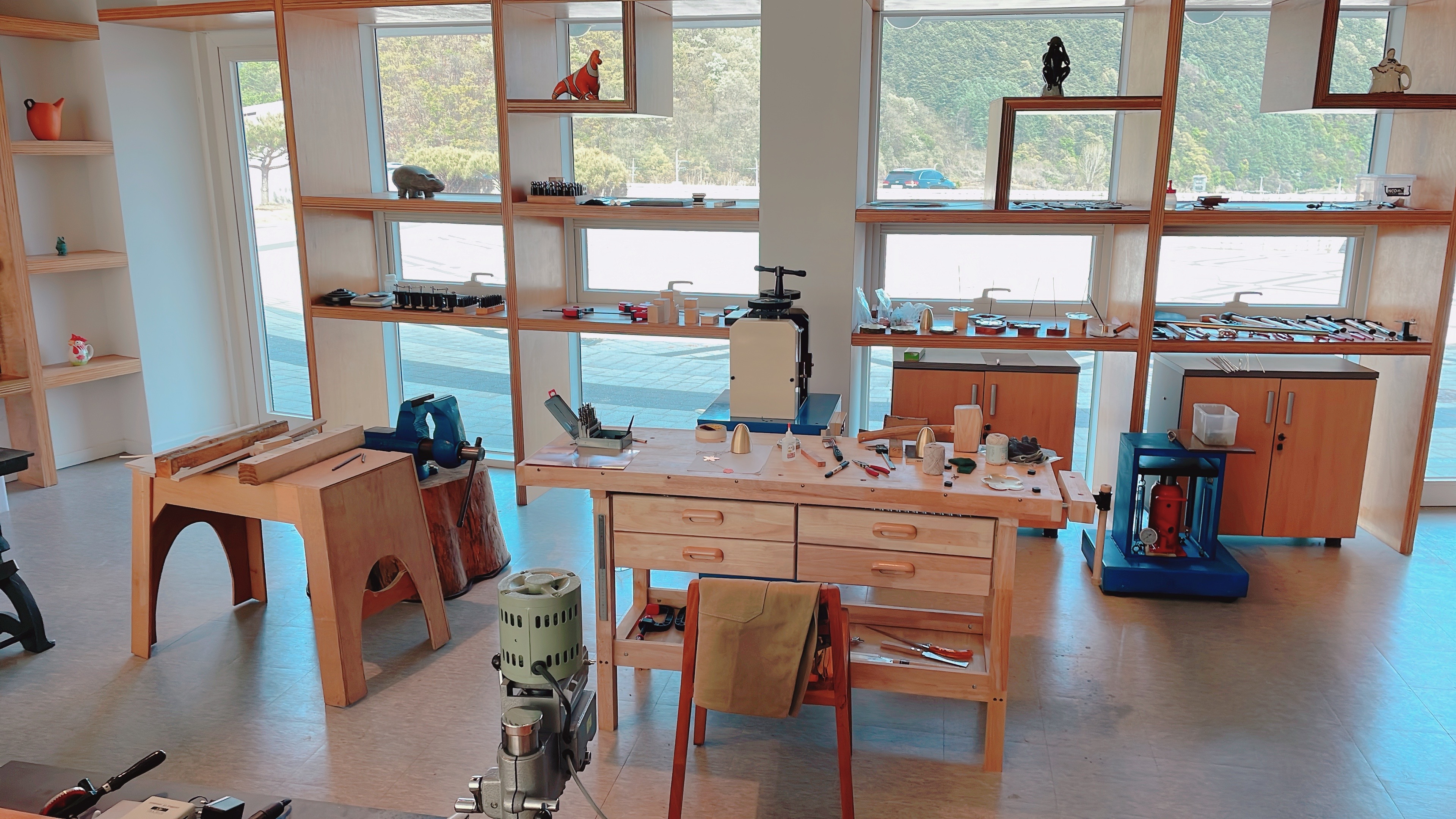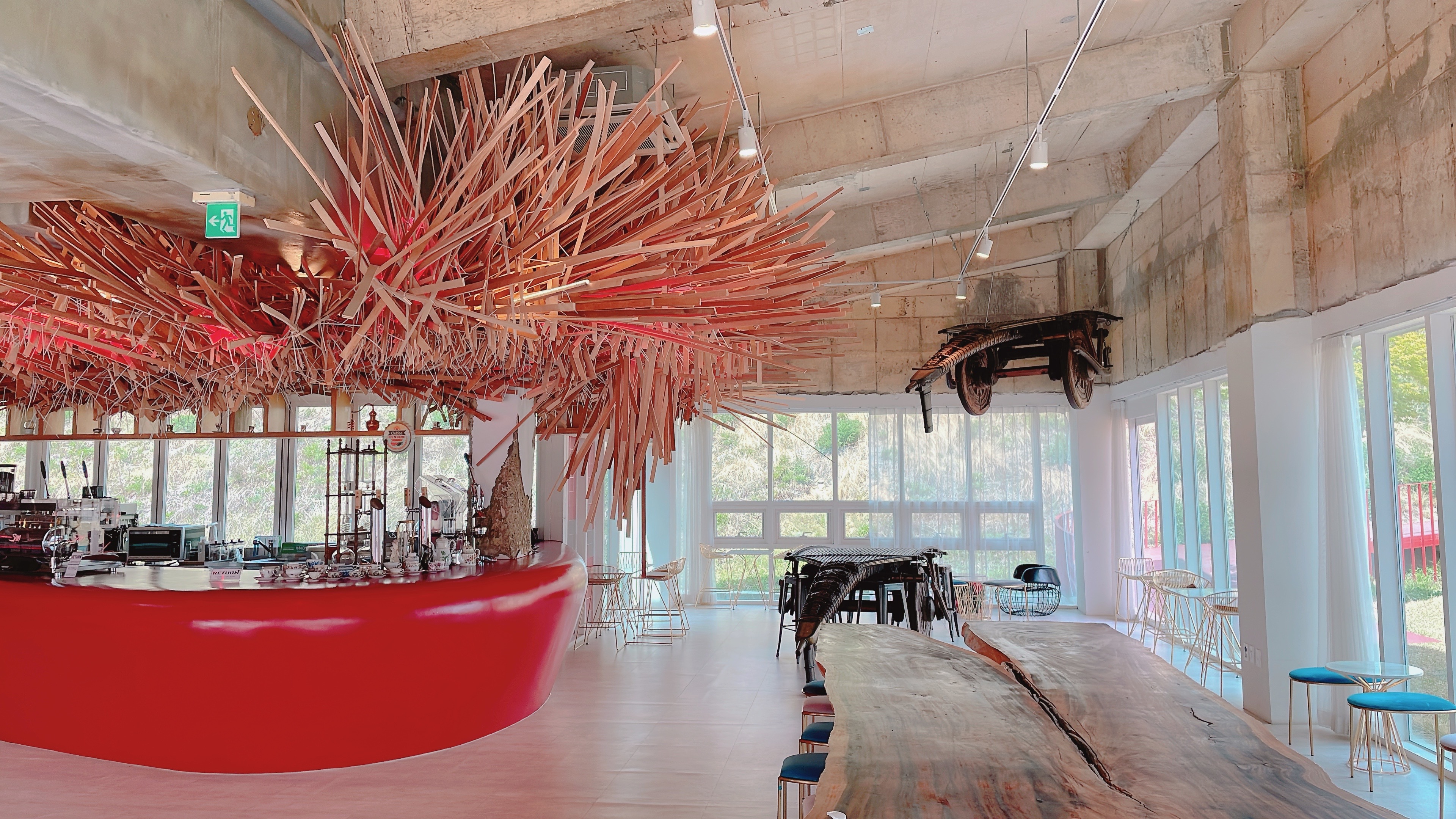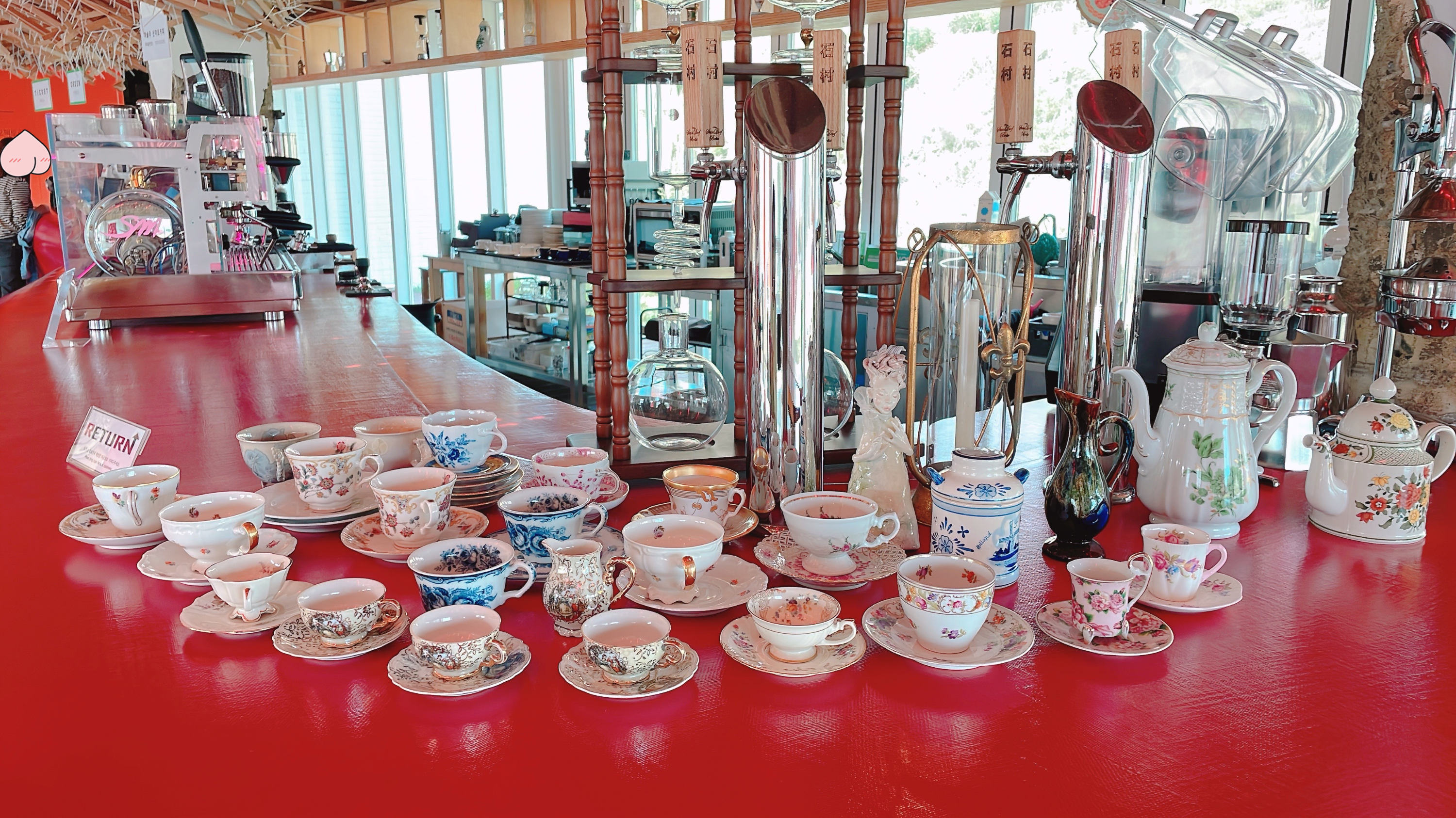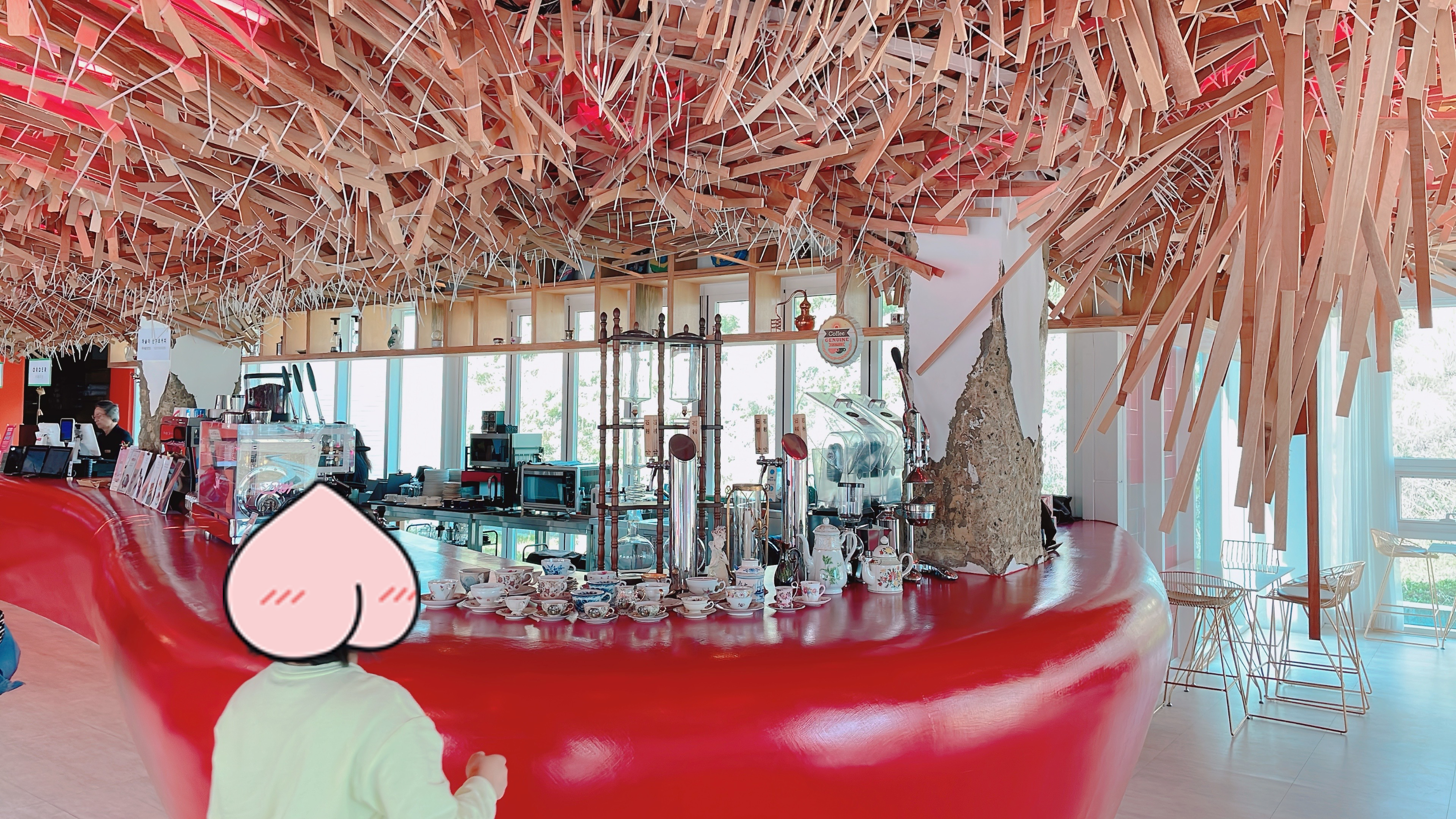 카페 달에 들어서면 독특한 조형물이 가득한 광경이 펼쳐집니다~