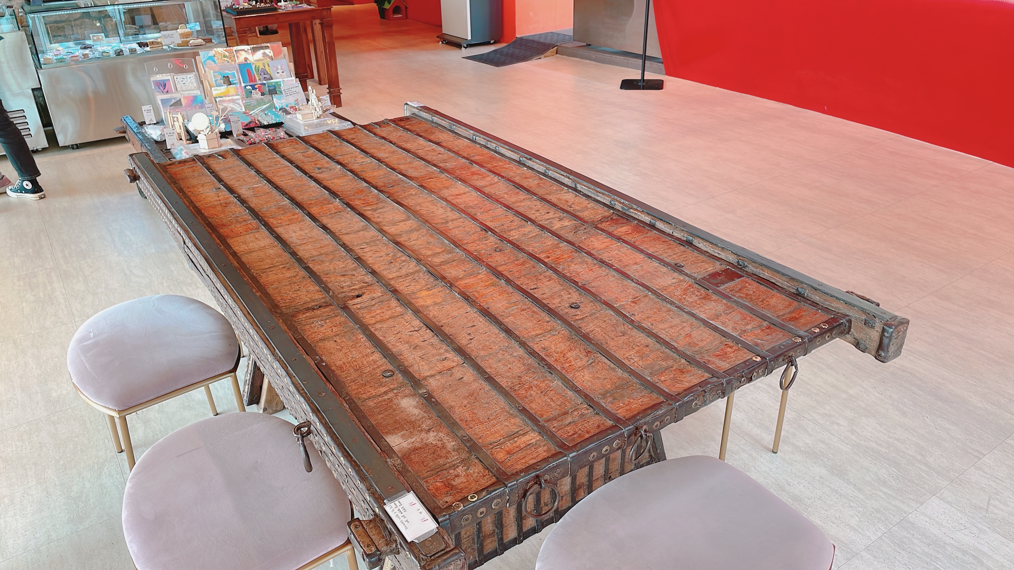 테이블이 오래된 유럽 성에 있던 문을 하나 뜯어온 듯한 모양입니다!