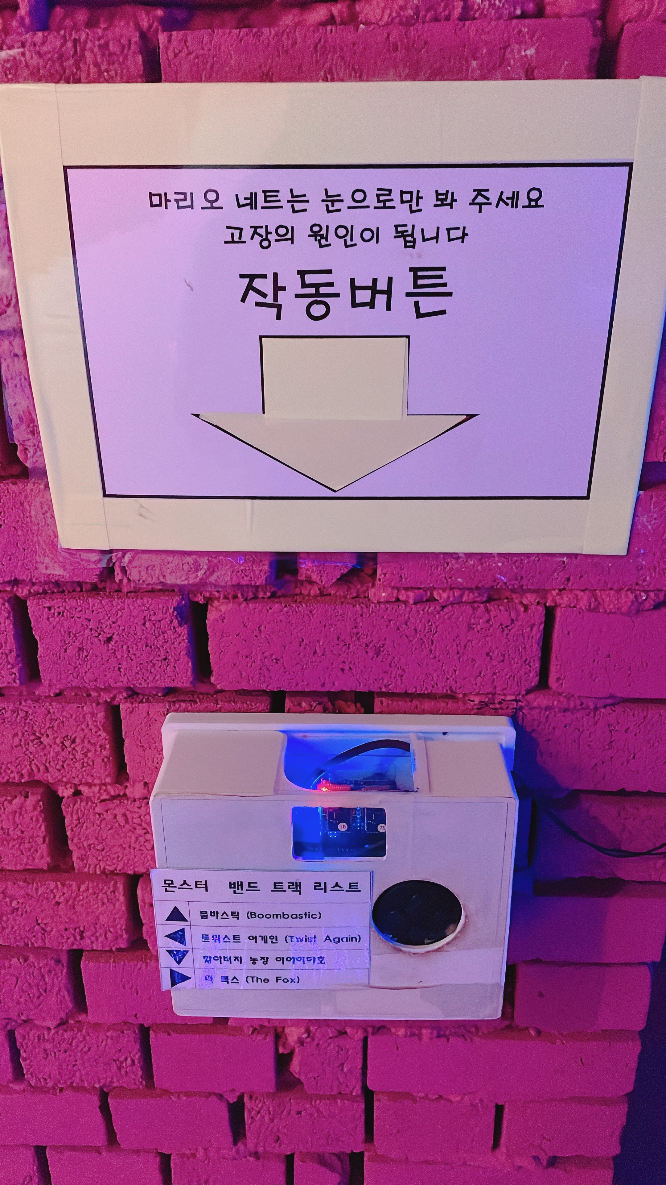 아래에 있는 버튼이 있는데 4가지 방향을 누르면 방향에 따라 4가지 음악에 맞추어...