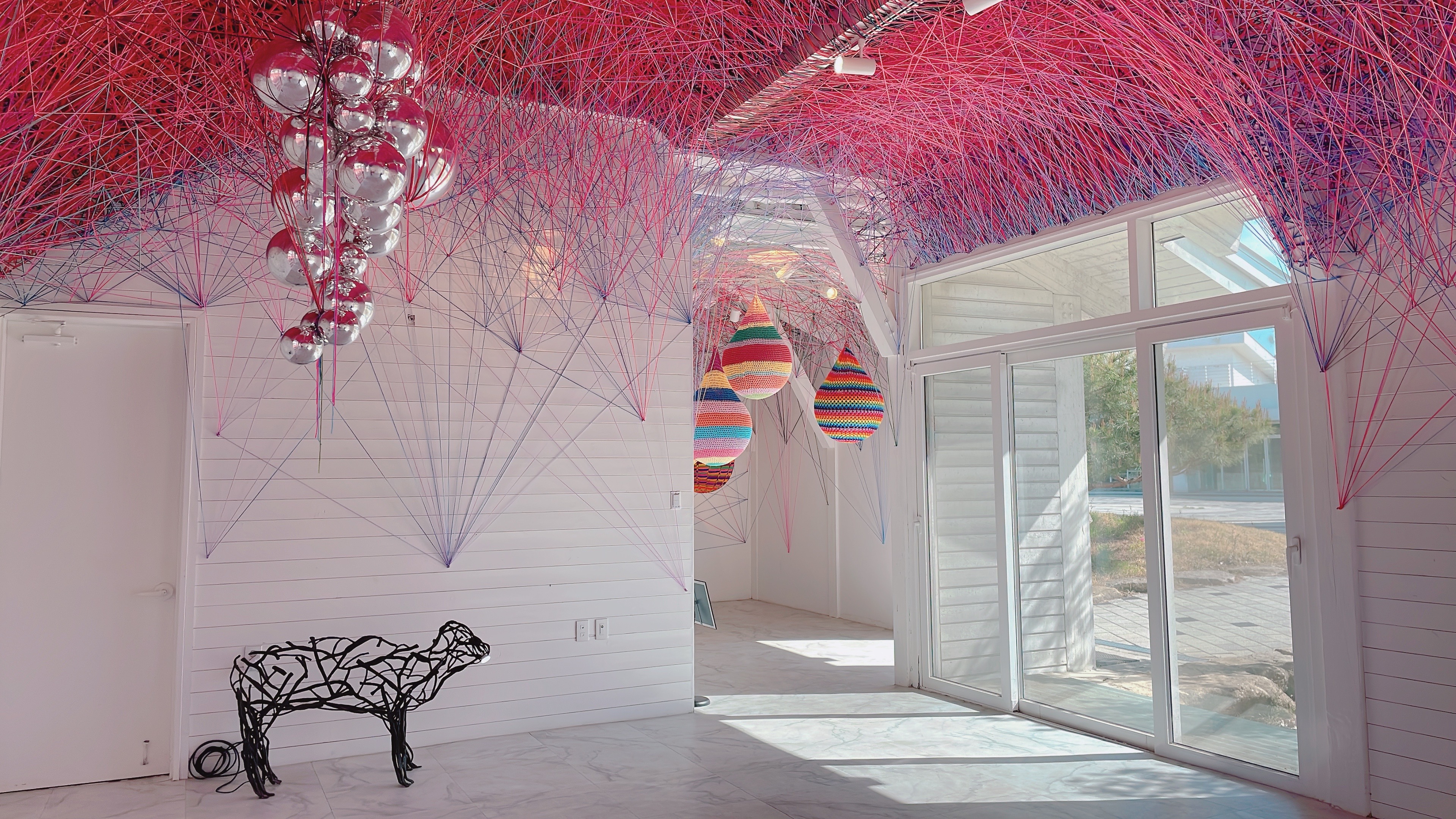 안에 들어서니 과하지 않고 절로 예쁘다는 소리가 나오는 실로 만들어진 조형물이 저희를 맞이합니다!