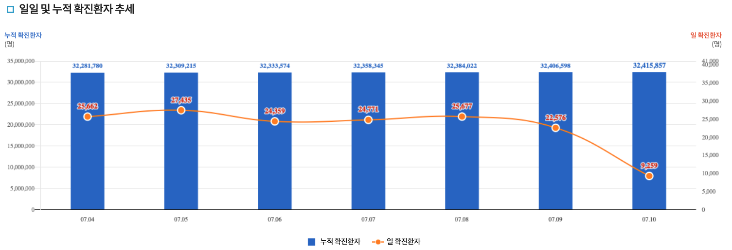 7월 3일부터 7월 9일까지 매일 2만명이 넘는 분들이 코로나 확진 판정을 받고 있었습니다.