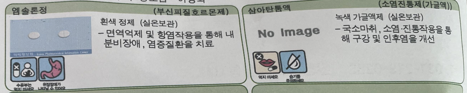 코로나 확진 뒤 둘째 날 목의 통증이 심해져서 다시 이비인후과에 갔더니 가글약이 부족할 것 같아 추가로 처방해주시고 엠솔론정이라는 스테로이드 약도 처방해주셨습니다...
