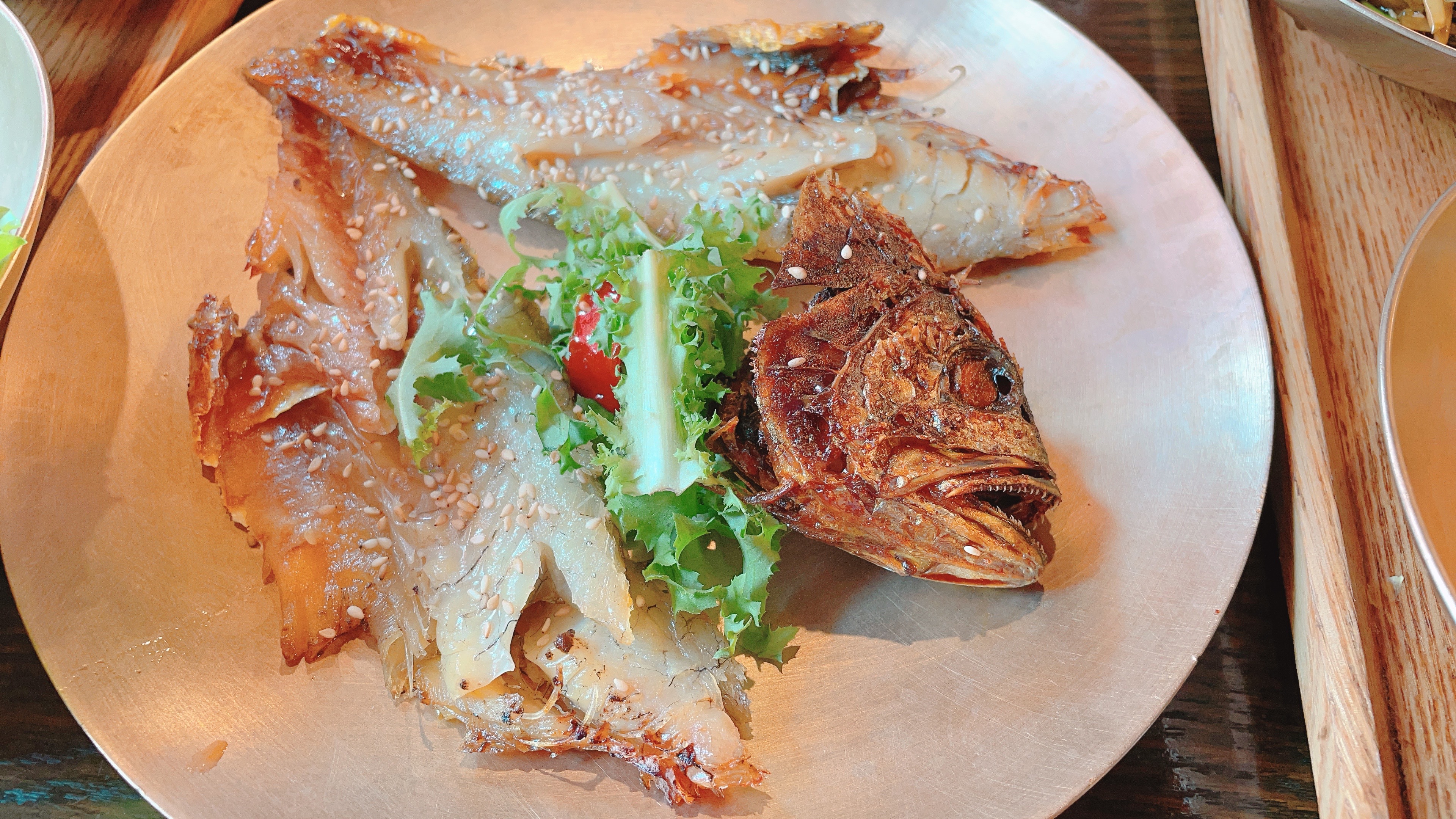 사진에 샐러드가 있는 곳에 고추장이 있는데 보리굴비 살을 찍어서 먹으면 더더욱 맛있습니다!