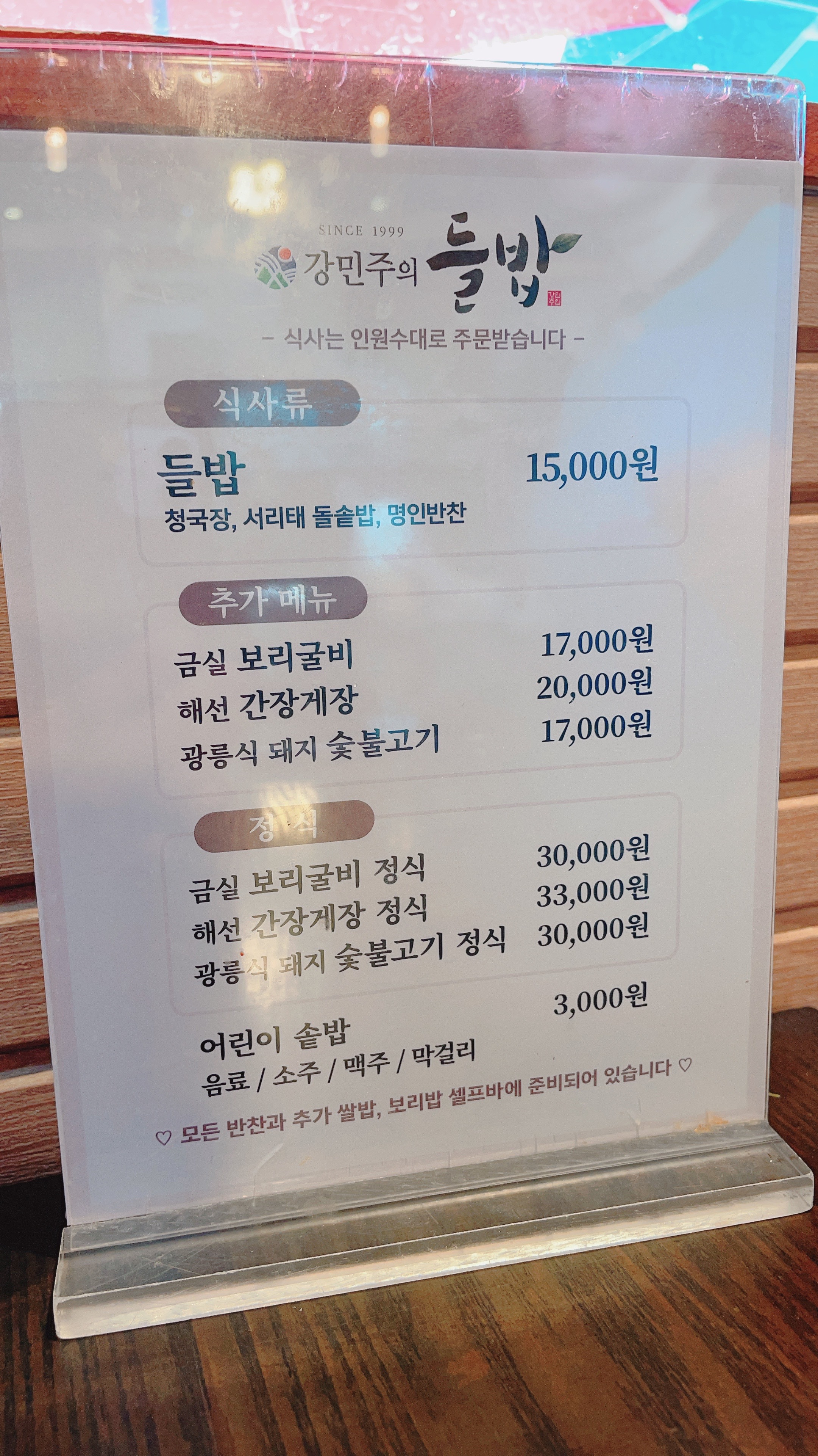 - 들밥과 추가메뉴를 따로 시키면 정식보다 2,000원이 더 비싸기 때문에 정식으로 주문하는 것이 좋습니다.