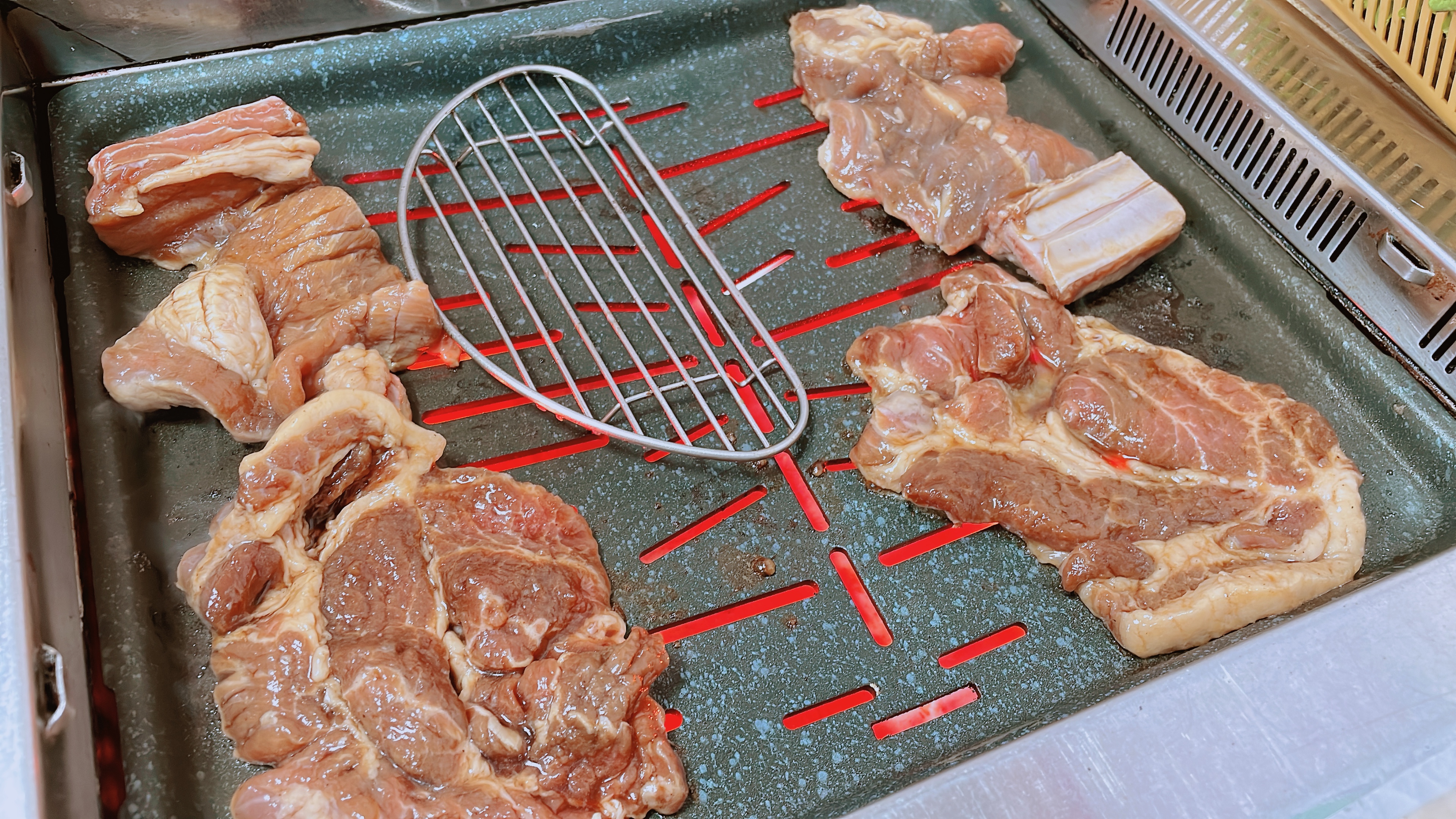 안창살을 금방 헤치우고(?) 나서 돼지갈비를 불판에 올려봅니다.