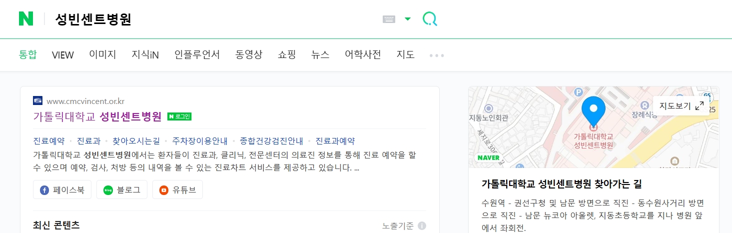 먼저 검색창에서 '성빈센트병원'을 검색해봅니다.