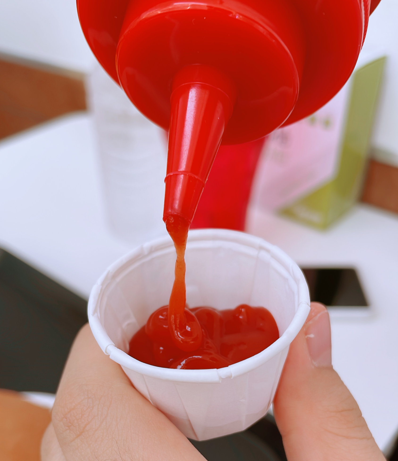 케첩과 일회용비닐장갑이