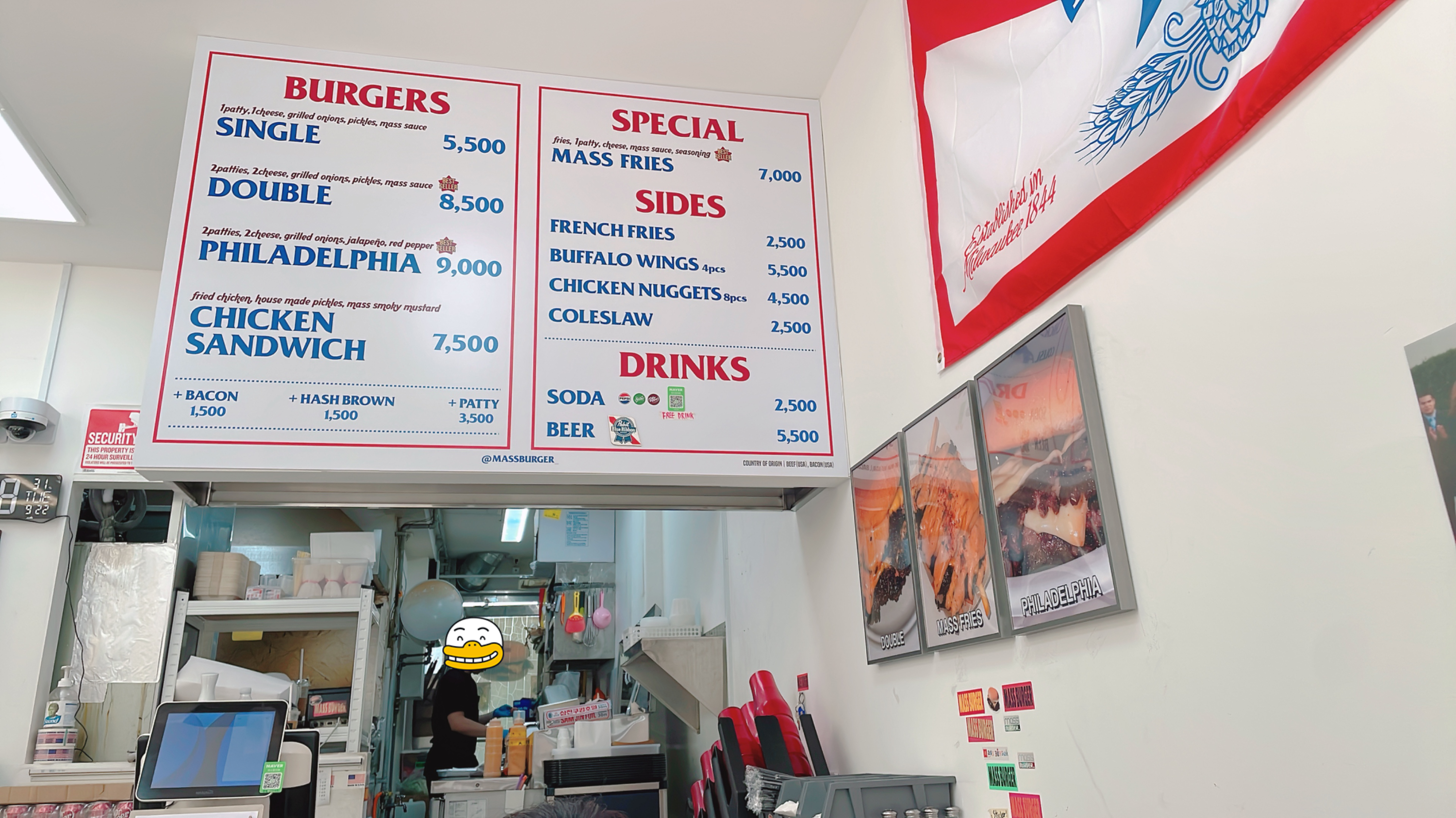 매스버거(MASS BURGER) 앞에 도착합니다!
