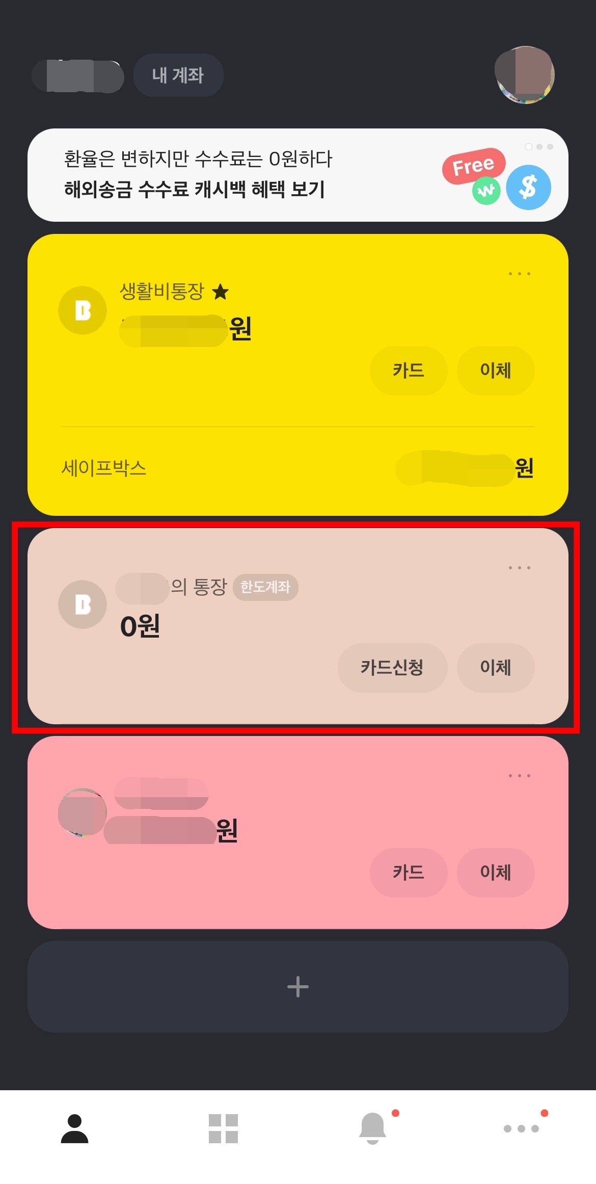 이제 홈 화면으로 가보면 방금 만들어진 입출금통장을 확인하실 수가 있습니다.