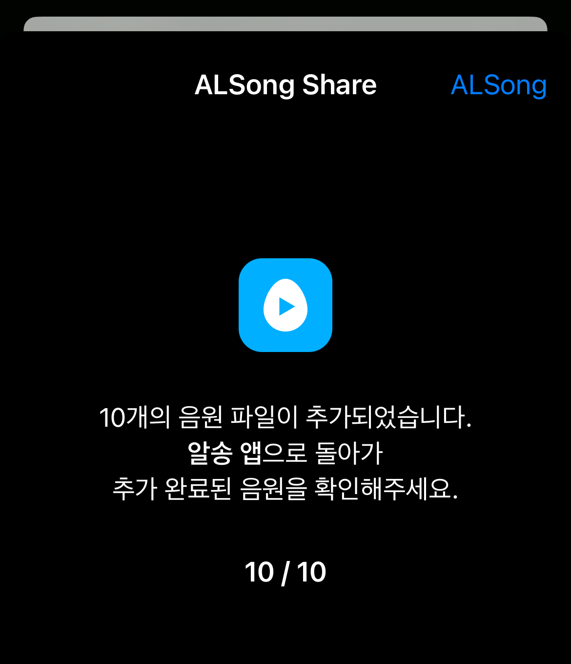 음원 파일이 추가되었다는 팝업이 뜹니다.