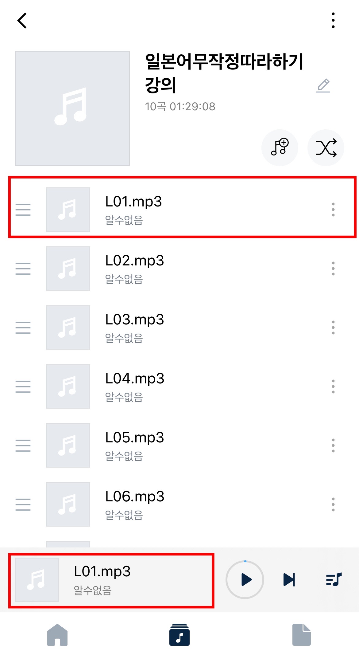 앨범에 있는 모든 MP3 파일들이 순서대로 재생됩니다.