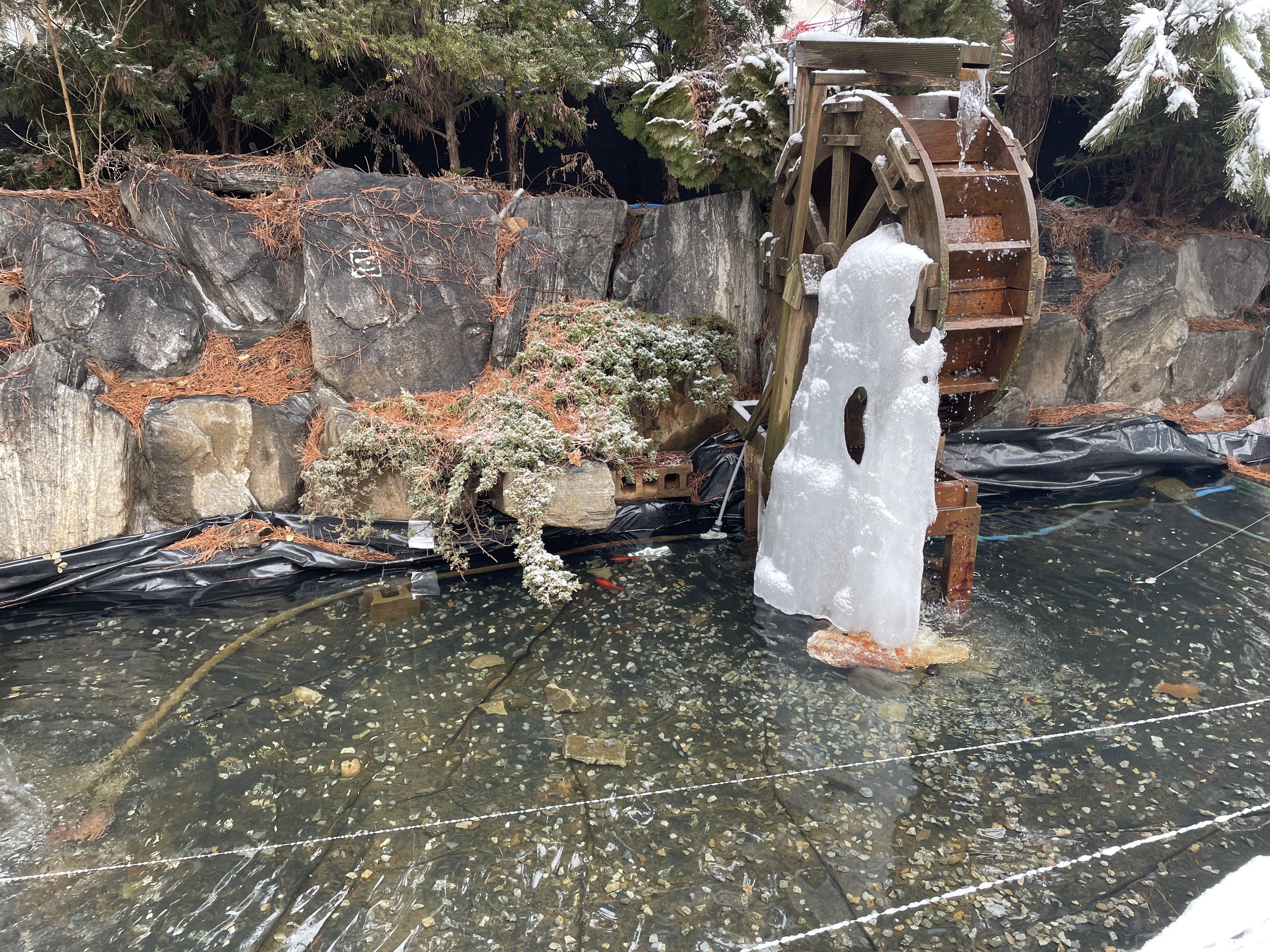 연못에는 물이 얼지 않고