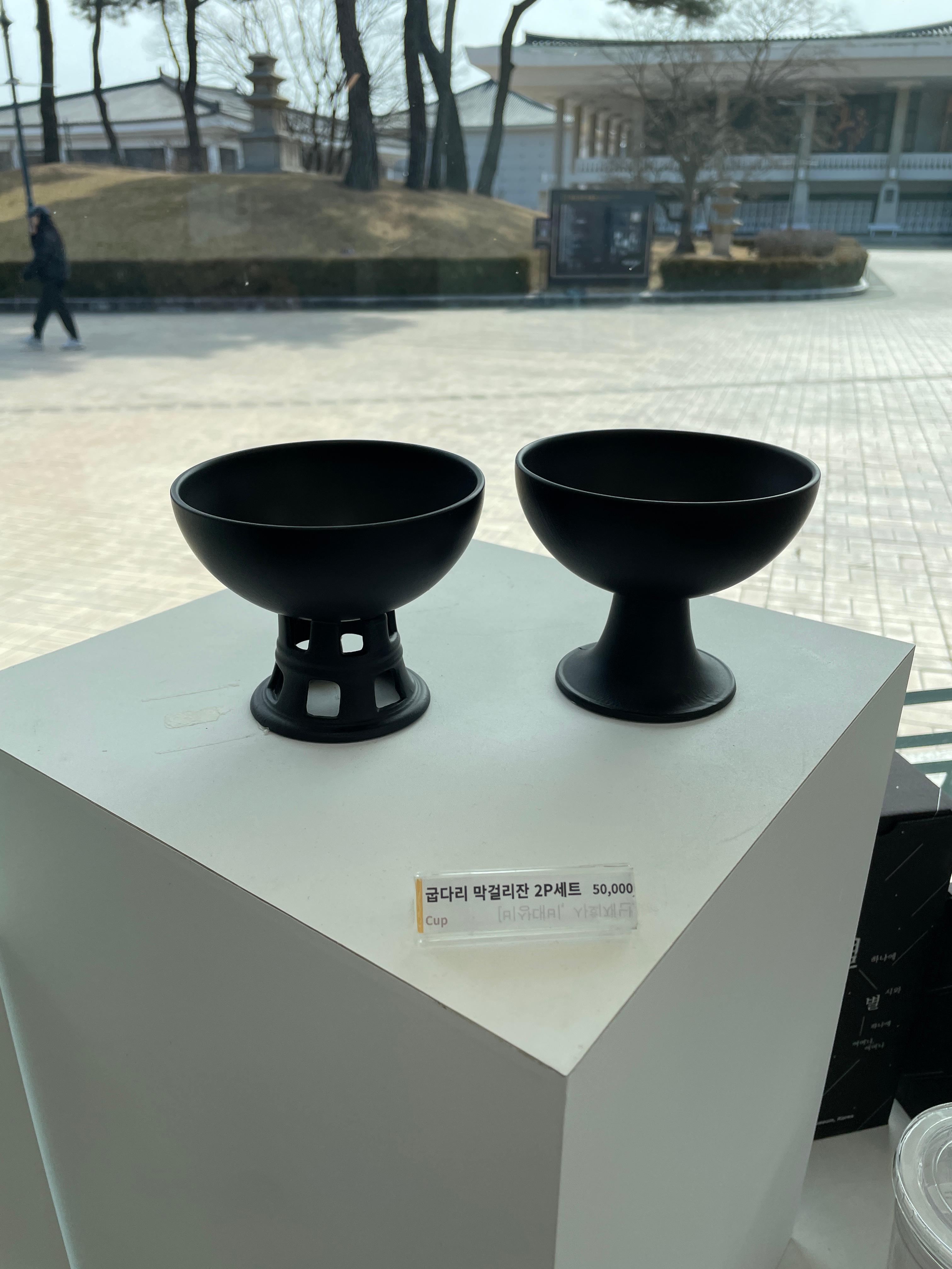 국립경주박물관 문화상품점에는 다양한 상품이 있는 만큼 가격대도 다양합니다. 막걸리를 좋아하시는 분들의 눈길을 확 끄는 '굽다리 막걸리잔'도 있어 직접 사용하시거나 소중한 분께 선물용으로 구매하는 것도 괜찮을 것 같습니다. 커플이나 부부라면 사이좋게 한잔씩 고를 수 있고, '강옥 소지'를 사용하여 두 잔을 부딪힐 때 종소리가 난다고 하니 건배를 할 때마다 기분좋은 소리를 들을 수 있다고 합니다.