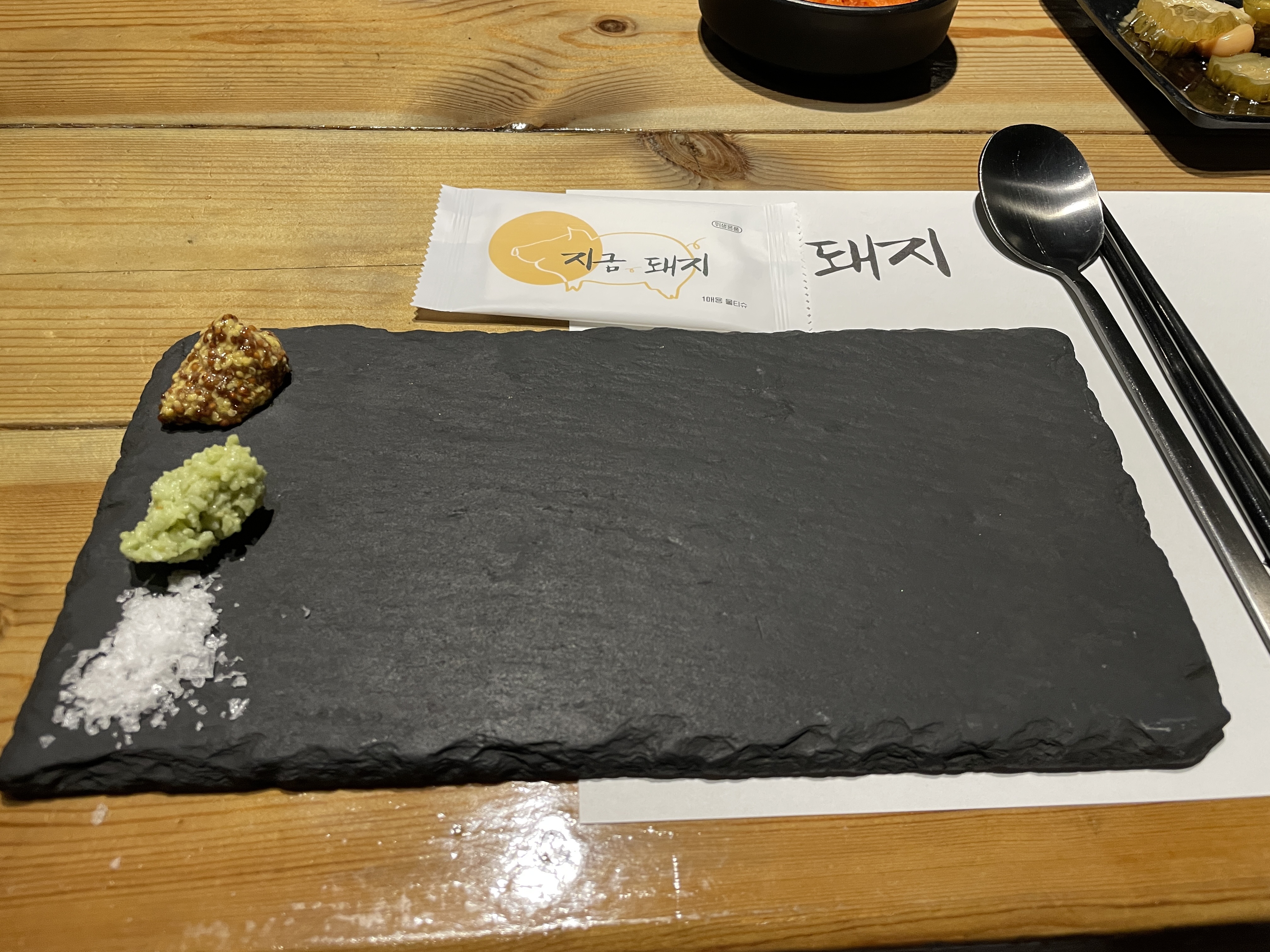 고기가 잘 익으면 직원분이 개인 돌판 위에 한점을 올려주십니다. 모두 한 점씩 먹어보더니 다들 눈이 동그래져서 서로를 바라보게 됩니다. 육즙이 그득한게 정말 맛있습니다. 그동안 제가 구운 고기는 뭐였을까요?