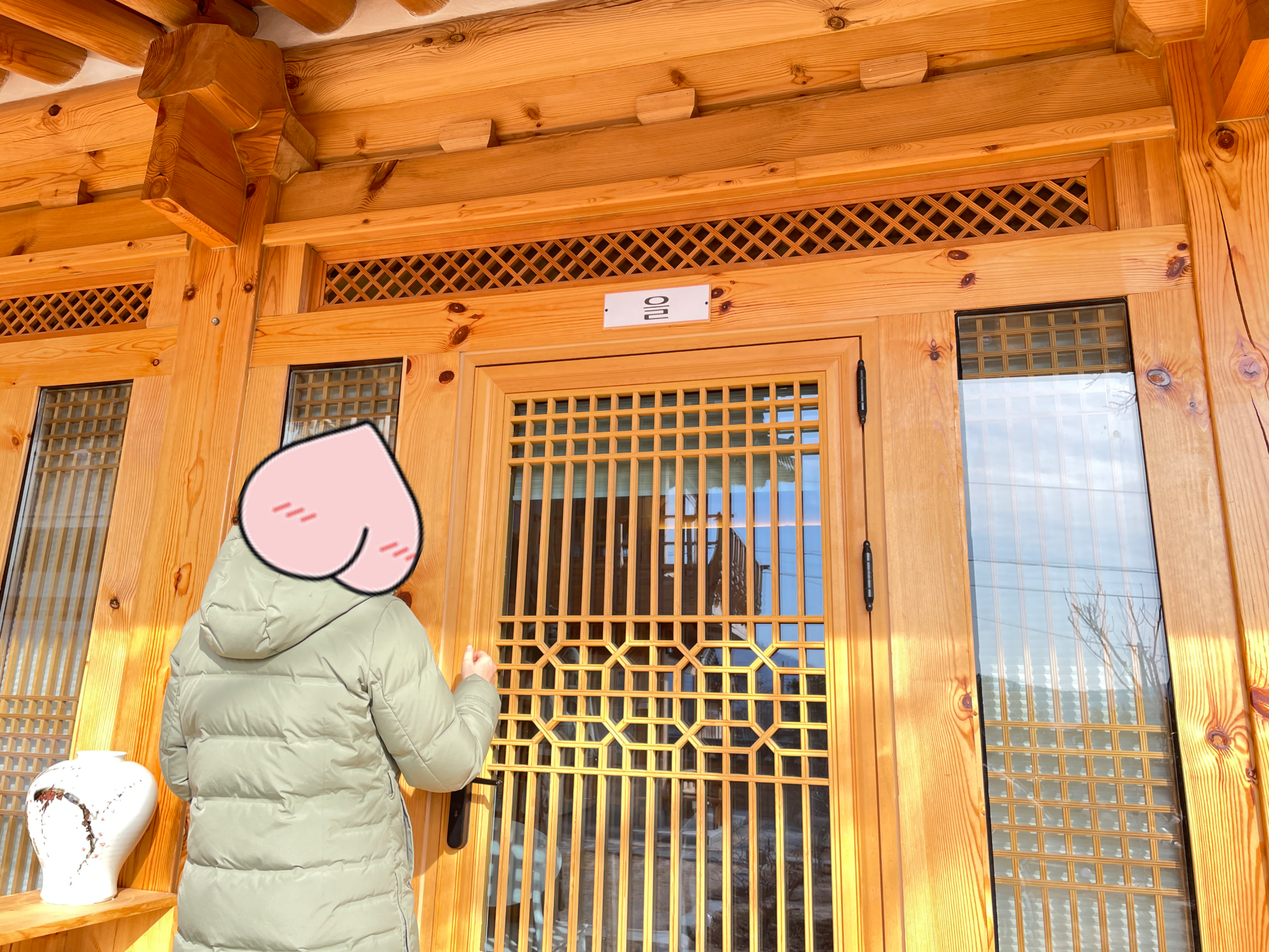객실은 열쇠방식이 아니고 디지털 도어입니다. 한옥에서도 디지털 도어를 사용할 수 있습니다! 사장님이 알려주신 비밀번호를 누르고 들어가봅니다.