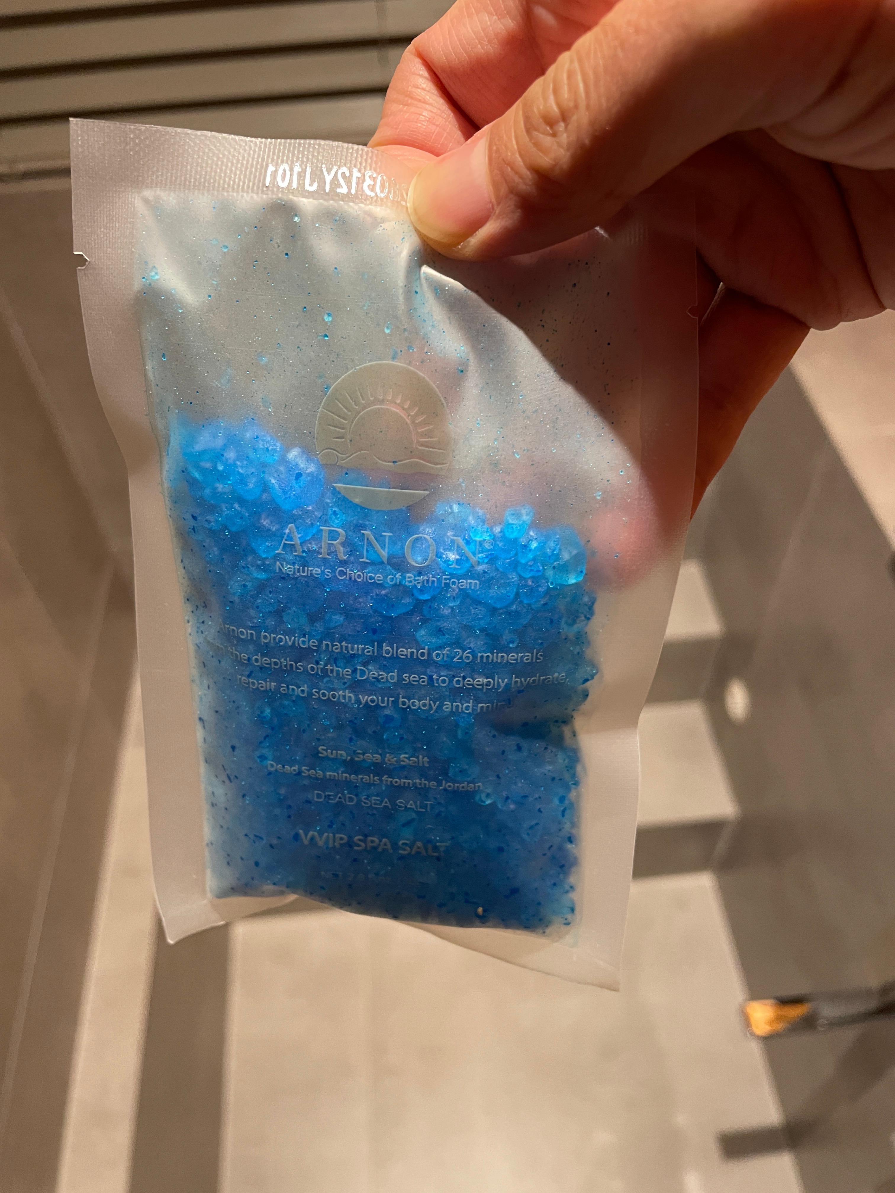 아, 입욕제로 수영을 못해도 몸을 뜨게 해준다는 사해에서 온 소금으로 만든 제품을 주십니다. 덕분에 물에 넣으면 컬러가 푸릇해집니다.