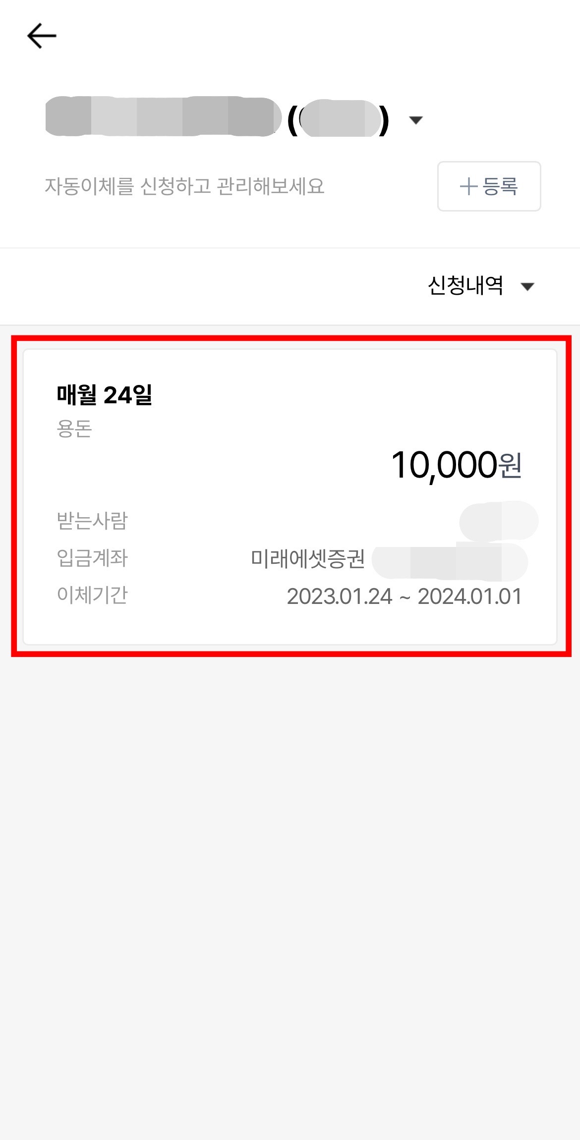 자, 이제 등록된 자동이체가 잘 보입니다.