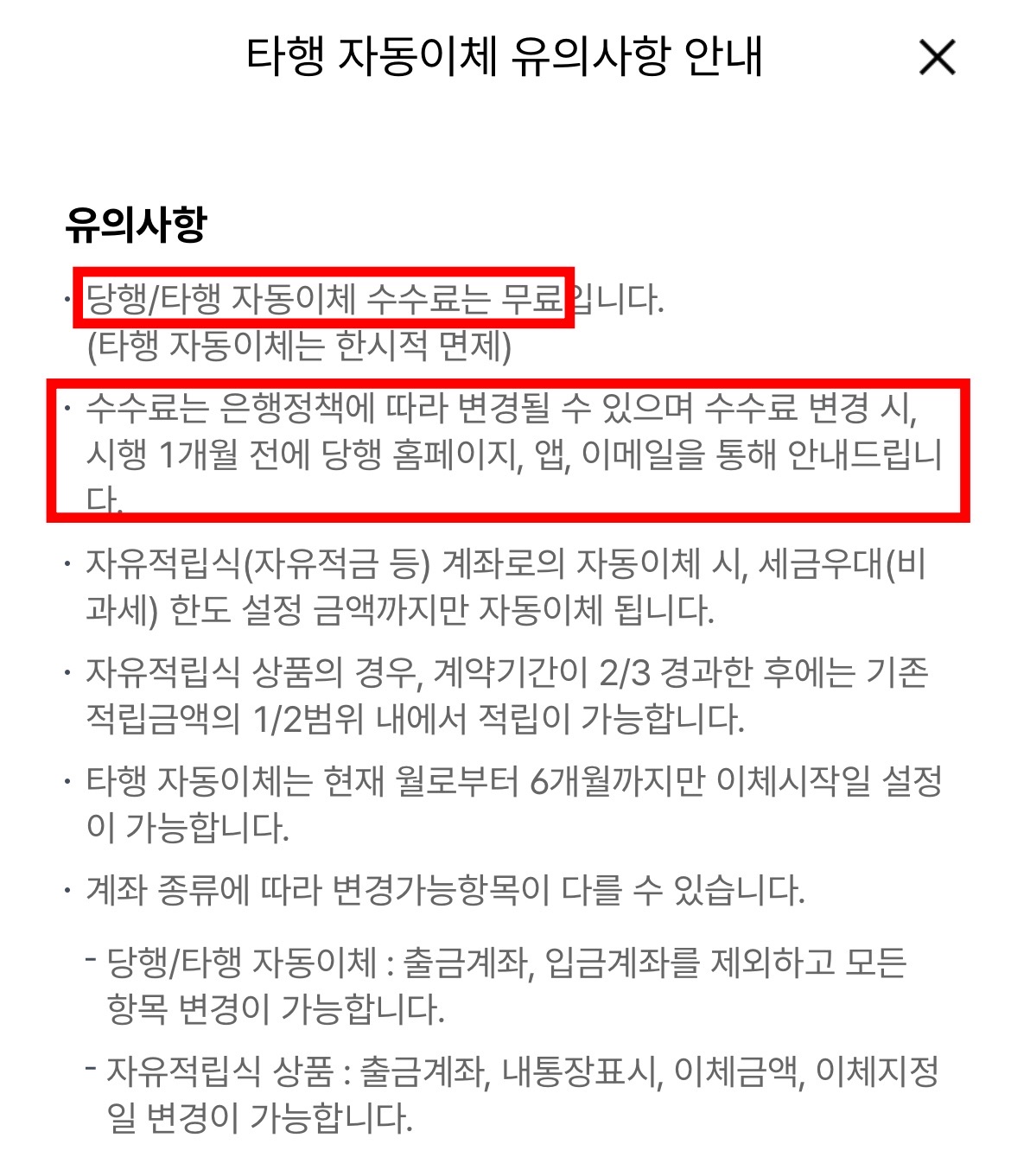 지난번 말씀드린 것처럼 케이뱅크 자동이체 수수료는 무료입니다. 자동이체 수수료의 변동이 있을 때는 1개월 전에 케이뱅크측에서 안내를 해준다고 하니 꼭 확인해주시기 바랍니다.