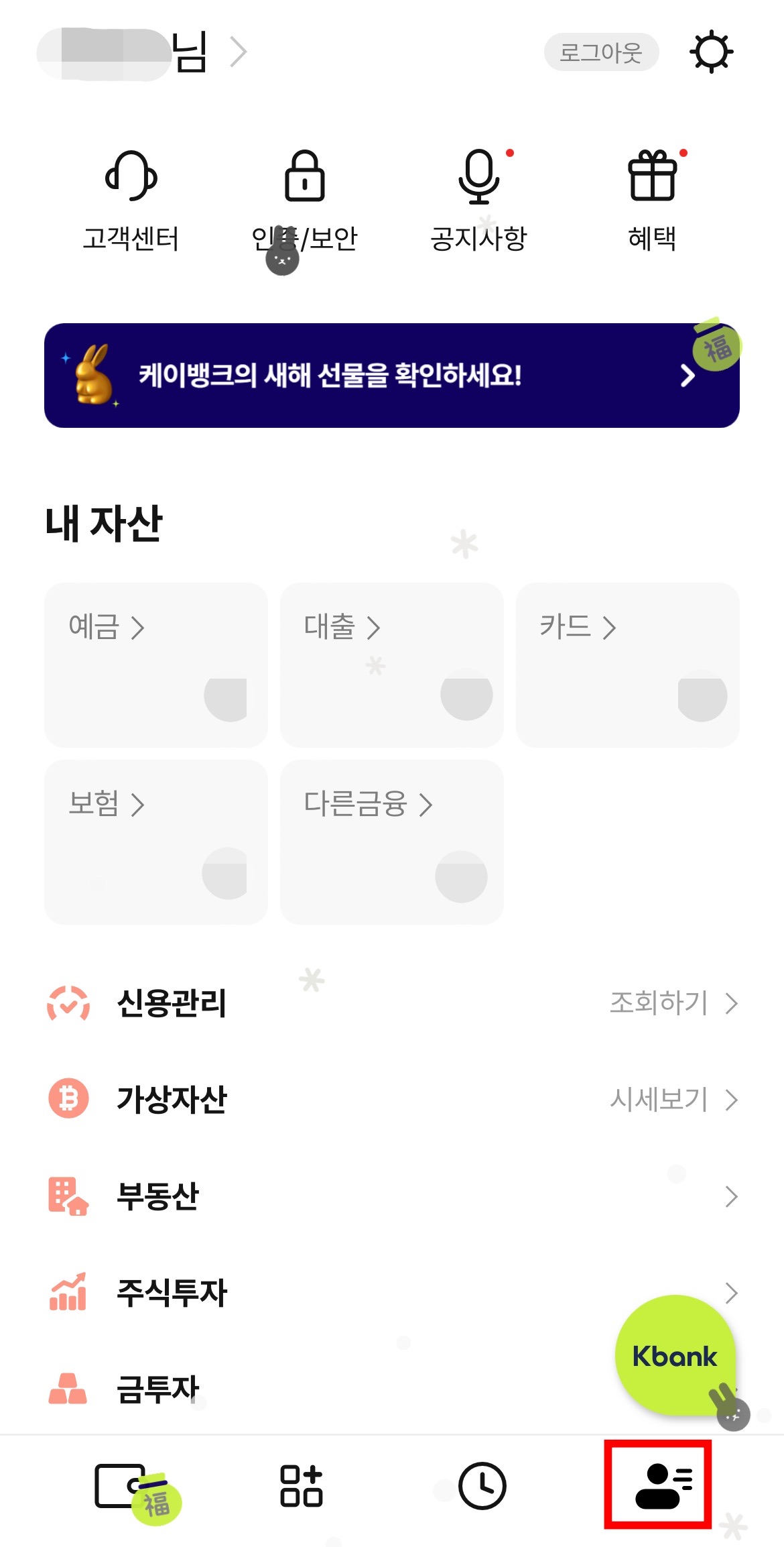 먼저, 여러분들의 스마트폰에서 케이뱅크 앱을 실행해줍니다.