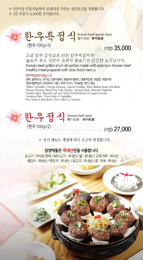 예를 들어 한우정식 밑에 '한우 100g ×2'라고 적혀 있는데,