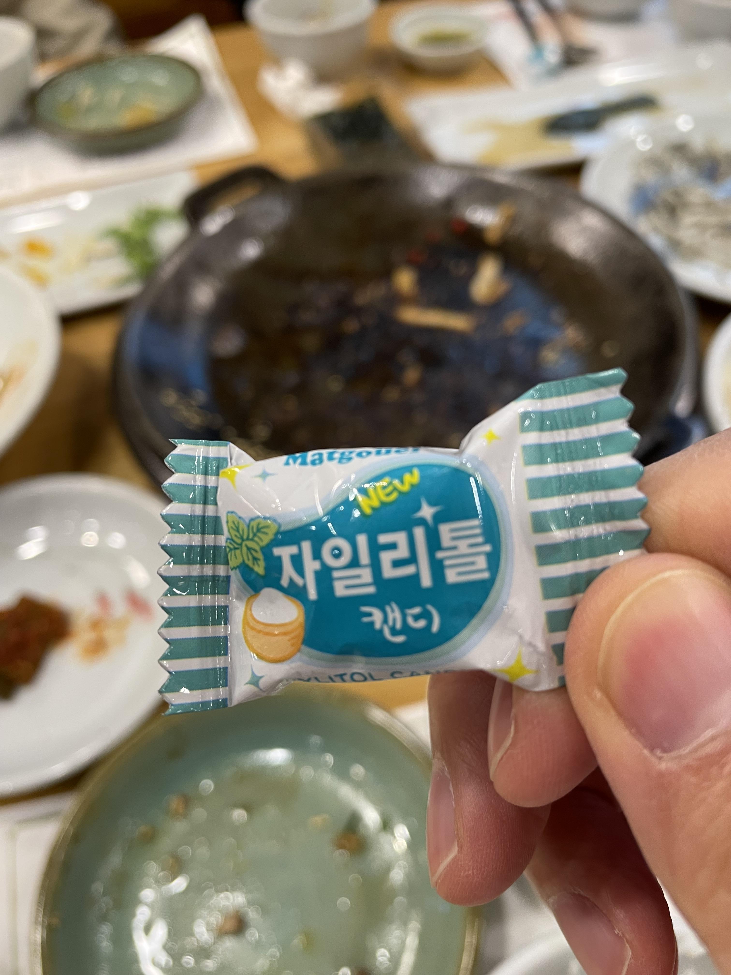 마무리로 처음 물컵 속에 숨어있던 자일리톨 캔디로 입가심을 하면 깔끔합니다~