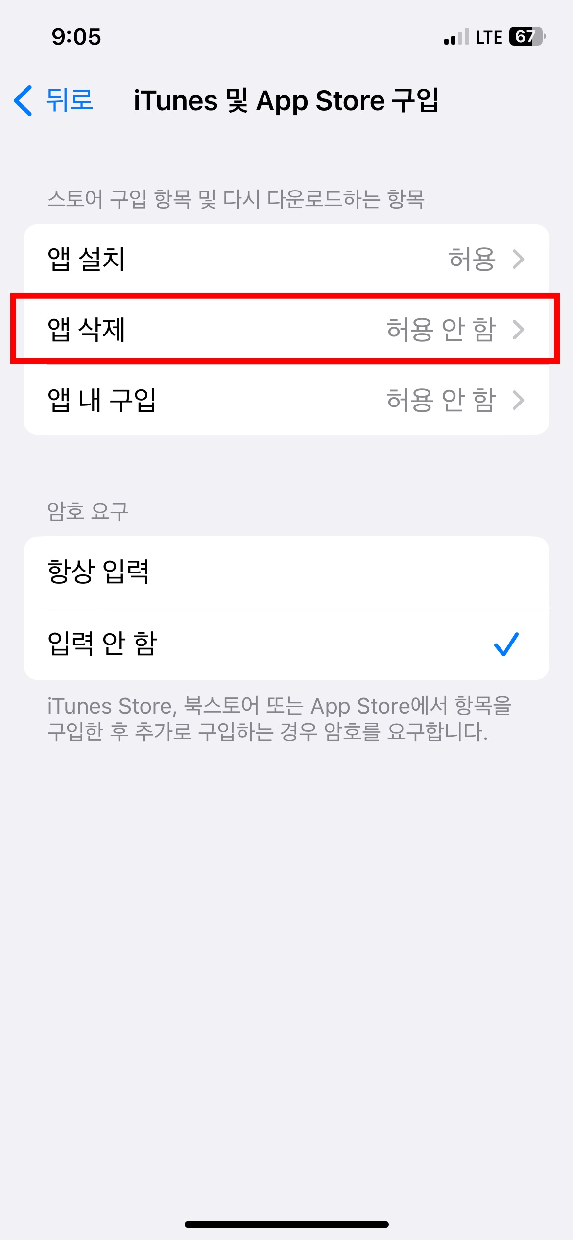 저처럼 '앱 삭제'에 '허용 안함'이라고 되어 있으면,